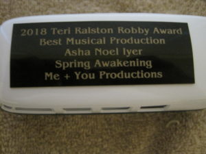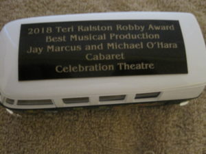 Hollywood’s Celebration Theatre was the big winner of the night, taking home nine awards—five for Priscilla Queen of the Desert and four for Cabaret. Cabaret tied for Best Musical of the year with Spring Awakening, the first Los Angeles show by Me + You Productions. Hollywood’s The Fountain Theatre’s The Chosen was named Best Drama Production as well as receiving two acting awards while Pasadena’s A Noise Within’s production of Noises Off was named Best Comedy. Twenty-two productions at sixteen different Los Angeles venues won awards. The evening was highlighted by the introduction of a new trophy, replacing the standby framed certificate. The winners present seemed to enjoy receiving their mini VW van buses as their award. A complete list of the award winners follows.