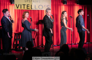 Before we wrap up these here notes, here are three photographs from Everybody Rise! A Resistance Cabaret.  First is our merry troupe.  Left to right: Eric Petersen, Kerry O’Malley, Robert Yacko, Brittney Bertier, and Nick Sacks.