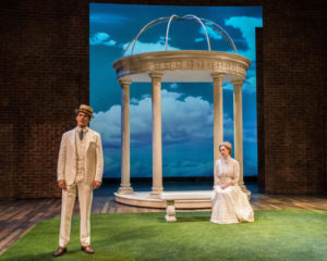 At The Gazebo adds some color and brightens up Riccardo Hernandez’s scenic design but is a long, tedious employment of the Henry James/Edith Wharton/E.M Forster style of classic literature in which hometown Natchez girl Dorothy (Micaela Diamond) no longer understands her childhood friend Carter (Sam Vartholomeos) who has returned from Europe with strange, new ideas on life and relationships.