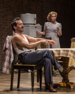 The Urbanes is an example of 1950s kitchen sink drama, sort of a dark take on The Honeymooners wherein Cabbie (Casella) gets overcooked liver and no respect from his wife (Miriam Silverman) as he attempts to find a partner to invest in getting his own Taxi Medallion. Tyler Micoleau’s lighting design and Leon Rothenberg’s sound design create a great effect of constantly passing el trains.