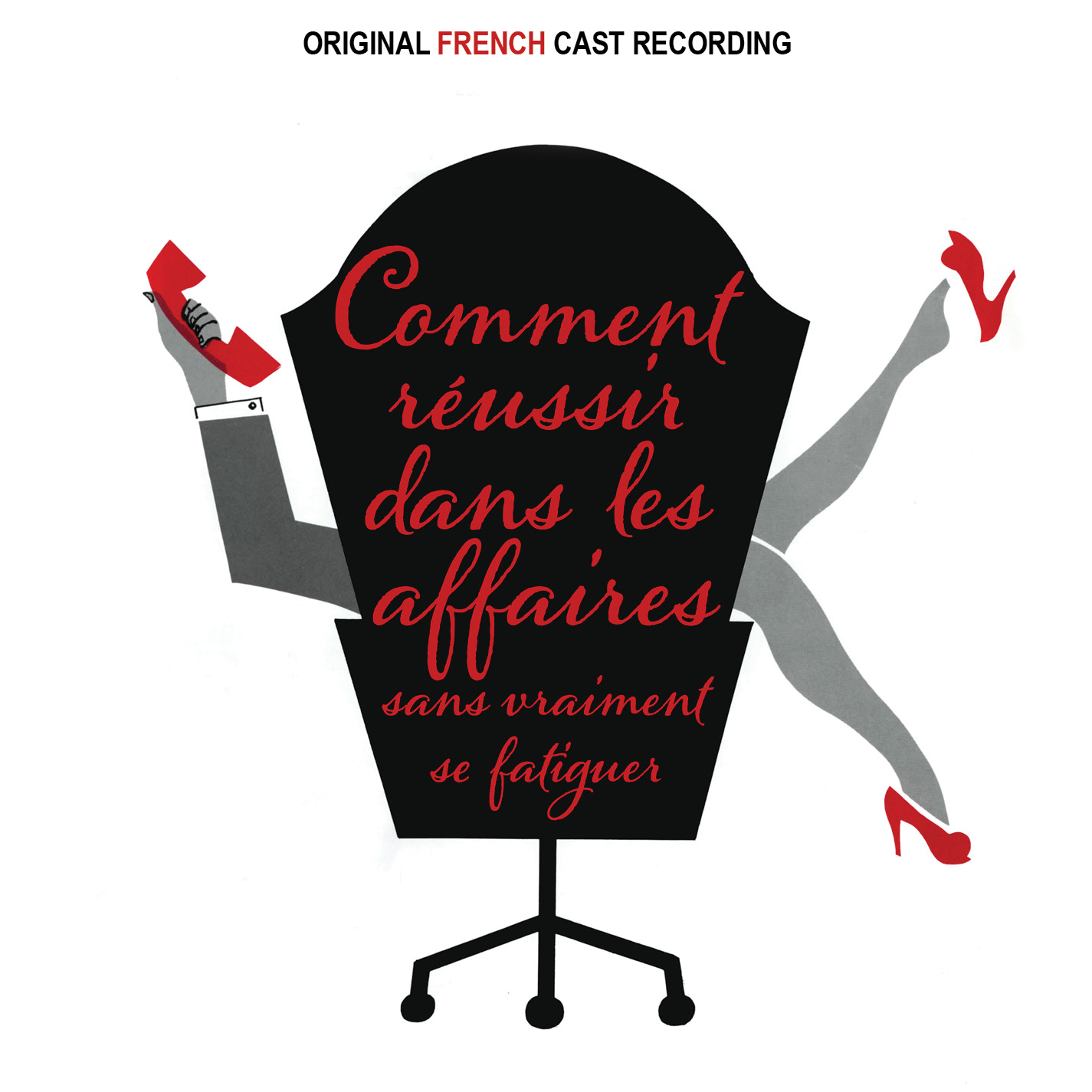 Well, dear readers, I must write these here notes in a hurry for she of the Evil Eye will be here bright and early and I need a good night’s beauty sleep. The good news is, almost no hand cramping yesterday so I got over thirteen pages done. I got about six and a half hours of sleep, got up, answered e-mails, futzed and finessed endlessly – as I read through what I’d written I could tell I was just trying to get anything down while dealing with the painful cramping. So, I smoothed out a LOT of stuff, moved a few things around so it made actual sense, and then wrote a new page. I’d pre-ordered a spicy Eyetalian Subway sub and that arrived and noon. It came with a free turkey sub so I saved that for my evening snack. I ate the spicy Eyetalian, and it was good, if a little dry. I only like red wine vinegar, but they only put a few drops on – barely there at all. If I order in person, I always make them put a decent amount on. Then there was a lot of back and forth trying to announce our first CD release in over a year. They’ve changed things again, so Doug had a few things to figure out and that all took time. He finally got the page up and I did the Constant Contact eBlast immediately. I went to the mail place and got the one important envelope, went to the bank, then came back home. I wrote more new pages, began a new chapter, probably the penultimate chapter before the ending chapter. I had a long telephonic conversation whilst sitting in the comfy armchair in the living room, a room in which there is living. That is the comfiest chair in the home environment, and so I instantly dozed off for two hours. Once back up, I came out of my stupor, had the little six-inch turkey sub, then wrote more pages for the next two hours. And here we are. The first Kritzerland release in over a year is the original FRENCH cast recording of How to Succeed in Business Without Really Trying en Francais. It’s a really fun recording with an excellent cast and a cooking band. Of course, I love the Frank Loesser score. Anyway, you can read all about it, hear some samples, and order at kritzerland.com. Here’s the cover.