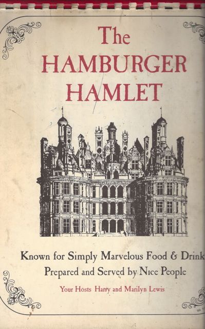 At some point in the mid-to-late 1960s I became a regular diner at the Hamburger Hamlet, mostly the one in Westwood, but also branching out over the next years to Sherman Oaks (one of the only Hamlets left), Hollywood, Culver City, and Brentwood. Their original menus were so much fun and huge, contained in a binder and you’d flip the pages over. I always had the Lobster Bisque (“Famous for This”), and a burger. Here’s the cover of their original menu, which is about eight to ten pages long.