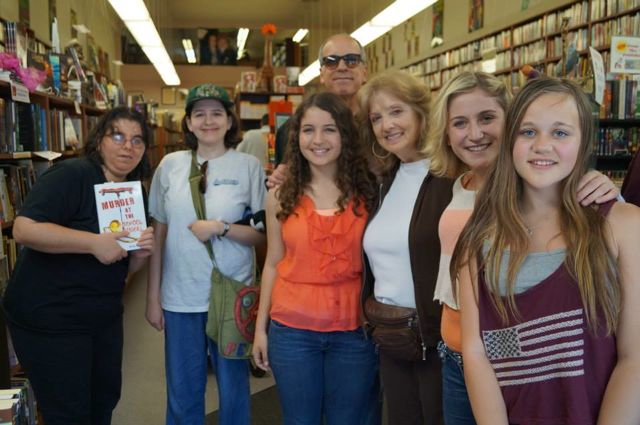 I must say, I love Mystery and Imagination Books and the owners, Malcolm and Christine, who are always so supportive and gracious. And all the people who showed up were the same. As I’ve said before, I have some friends in the city of Los Angeles who have never once come to any of my book signings, so perhaps I should put quote marks around “friends” because you know what, friends support each other and no one is going to tell me that in thirteen signings they had something to do every single time. And yet, these same friends ask me to attend their events or shows and, of course, I won’t be doing that again. Book signings these days are tough anyway, and many authors have given up doing them at all because it’s impossible to get people to come to them. I once went to a book signing Harlan Ellison was doing – want to know how many people attended besides me? Zero. I mean, it’s shameful. People just can’t seem to get off their ASSES anymore or it’s not about them or who knows what it is. It used to be so much fun in this city with the plethora of wonderful bookshops, and there were always signings and fun things to do and one did them. But enough about “friends” and more about FRIENDS. Here are some now in this lovely photograph taken during the signing. Left to right, they are Adriana fans Stephanie and Melinda, Sarah, Adryan, I’m in back of them, Sami, and Sami’s friend, Shanee, which I’m not at all certain I’m spelling correctly.