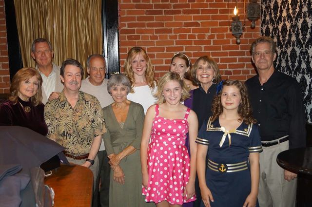 And we had quite the audience. In attendance were such folks as Richard and Elizabeth Sherman, costume designer Pete Menefee (he did the costumes for the play I did at the Taper back in 1973, Forget-Me-Not Lane, and he was one of the chimney sweeps in the Mary Poppins film), Tom Hatten, Nancy Dussault, Will Mackenzie, cousins Alan and Dee Dee and Dee Dee’s wonderful mom, Paula, neighbors Tony Slide and Bob Gitt, the lovely actress, Leslie Stevens, new dear reader Caitlynne Medrick, the Colony Theater’s Barbara Beckley, actor Bruce French, my pal Barbara Deutsch and many others. Here is some photographic evidence of last night’s show. First – our wonderful group.