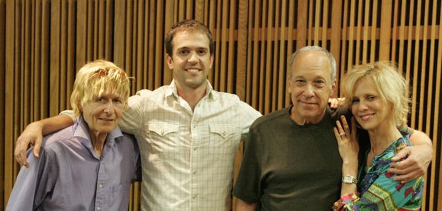 Finally, we have a lovely group photograph of a group – this group, left to right, features Lanny Meyers, our engineer, John Adams, the producer, and Sandy. It’s a motley crew but we’re a lot of fun, especially after eating Astro Burger.