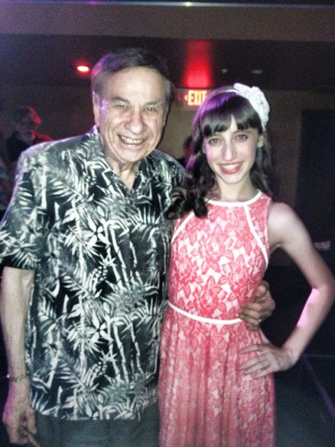 There were so many highlights in this show – the anniversary shows are fun for me because I’m not bound by a theme – it’s just songs I love that we haven’t been able to do before. Dan Callaway did such a beautiful job with The Kid Inside – he actually went up at both shows, but he recovered quickly and his performance was so powerful and heartfelt that the audience loved it. Valerie did the best As If We Never Said Goodbye ever. Jane hit it out of several ballparks with the rather unique version of Getting Married Today. One little vocal thing I gave her at rehearsal got the biggest laugh of the evening in an evening that was filled with laughs. Kay was so endearing on One Boy, as if the clock had been turned back fifty years to when she was playing Kim on Broadway in Bye Bye Birdie. Josh socked home She Touched Me and the audience ate it up like a hot fudge sundae. And Sharon McNight killed with Some People, an amazing performance. Sami and Sarah got a huge ovation for their Two’s Company and Jenna stopped the show cold with Dear Mr. Gershwin – not only her wonderful singing of it, but her incredible tap dancing. The Yiddish Sondheim did what it’s always done – got huge laughs for the entire duration of the number. Everyone’s other numbers were equally as good – I’m just listing my personal highlights. But for me, the most moving thing in the evening was hearing Sami, Sarah and Jenna do my song, Three Friends. Each of them captured the pain and emotion in their solo verses and then shone in the choruses. Elizabeth Sherman told me it moved her to tears and I heard that from several others. I could not have been happier with their performance. I had a blast with the patter and kept energy high in both shows. And the Sing-a-Long number was really fun – people really tried and it was just very funny. I’ve been doing that number since 1986 and it’s never failed me yet. Here’s Jenna with the irrepressible Dick Sherman.