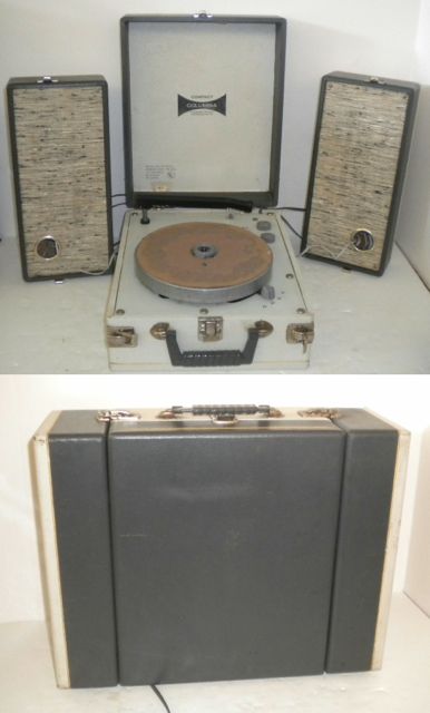 And I found this on eBay – which has to do with yesterday’s topic of discussion – I talk about getting this item in Kritzerland, when I joined the Columbia Record Club.  This was my very first personal stereophonic record player and oh how I loved it.  I had the measles when it arrived, so I was home in bed and I could sit up and put it on my lap, open the speakers and listen to stereophonic records and what a thrill it was.  I had the Ben-Hur soundtrack and I had several Columbia cast albums, but my favorite was a United Artists LP of Ferrante and Teicher playing Exodus and other themes.  That was thrilling in stereophonic sound.  Anyway, here is a photo from eBay – it’s beat up but you get the idea.