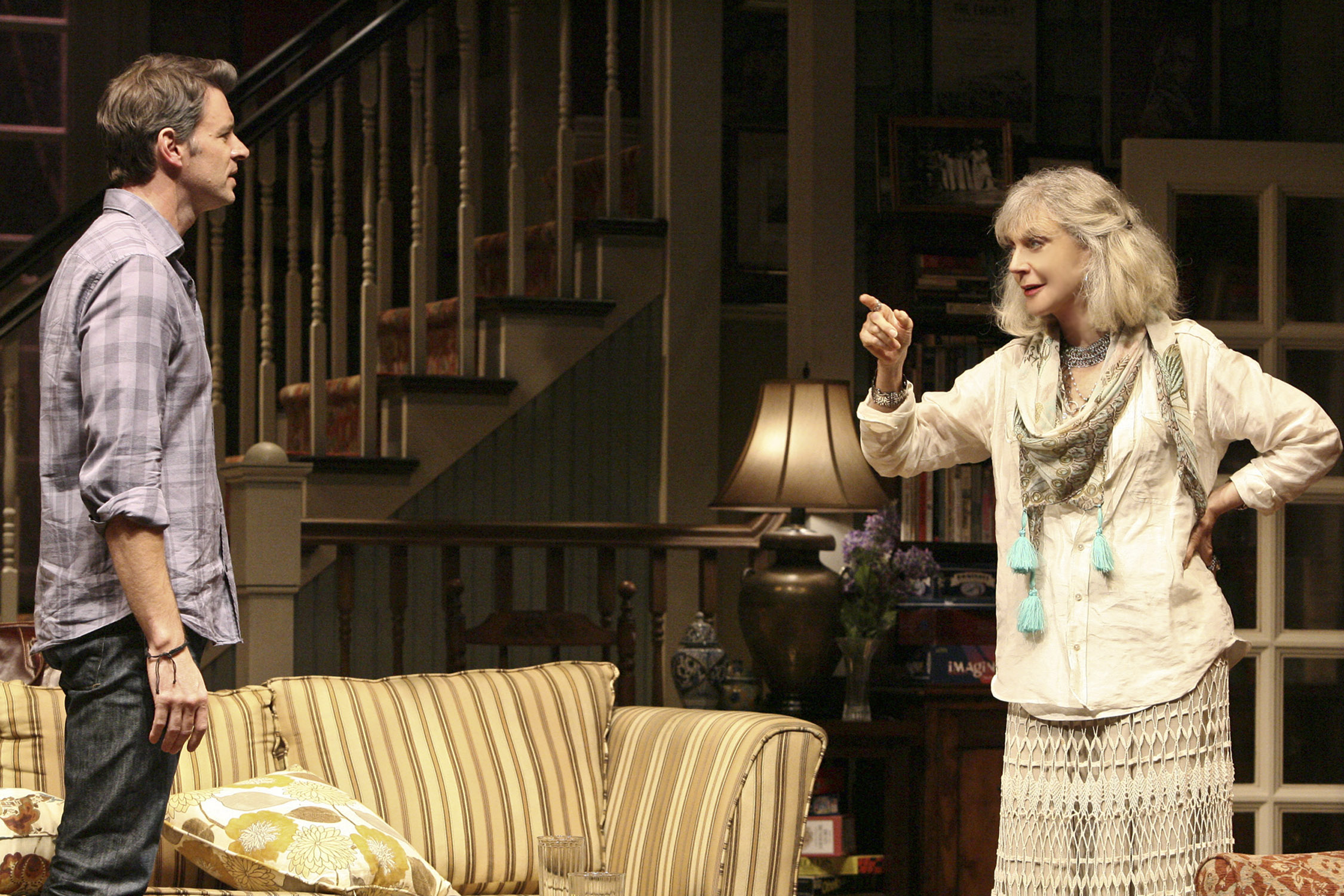 Blythe Danner is incandescent but she is burdened with the clichéd role of being a neglectful mother and a lusting cougar. David Rasche makes the most of his underwritten role as the not so grieving widower. Sarah Steele and Emily Swallow provide able support as Susie and Nell. Eric Lange wallows in the shallowness of Elliot and the audience cringes whenever he appears. Scott Foley comes off best as the idealistic Michael, a successful TV star who spends his off time doing charity work in Africa and returning to the theatre. Foley makes Michael a very believable character, one you wouldn’t mind spending more time with. Daniel Sullivan competently directed and John Lee Beatty provided the show’s best feature, it’s beautifully detailed interior of a century-old house. The Country House itself needs some major fixing up.