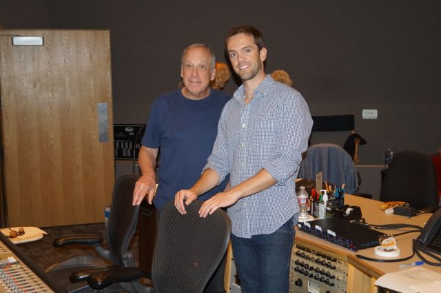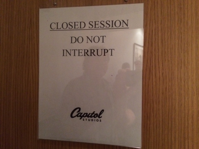 It was an incredible feeling walking into the legendary Capitol Records. I’d been there only twice before, but never really inside, just picking up some masters that I was licensing. But yesterday morning, I pulled into the Yucca gate and into the VIP parking lot, parked my car, and entered that amazing building. Walking down the hall, looking at the photos on the wall – Peggy Lee, Judy Garland, Nat King Cole, Dean Martin, Keely Smith and, of course, Mr. Sinatra – unbelievable. And then turning the corner and heading to Studio A, the very room that Sinatra and all those incredible people recorded in. I’ve recorded in many, many studios, here in LA and in NY, and I have never ever seen the efficiency with which Capitol is run. The room was perfectly set up, just as the engineer asked for, and the engineer had nothing to worry about other than engineering – we had a separate Pro Tools operator, who was also in charge of all the headphone mixes. Our downbeat was at ten and we had music playing on the dot. Sandy arrived right after me, Lanny was already there, and the musicians all began arriving around nine-thirty, all thirty-five of them. The minute I’d left my house I realized I’d forgotten my cell phone – really annoying. Ordinarily I would not have cared, but I had a few people coming and I was worried they might not know where to park or how to get in and they’d have know way of contacting me. Fortunately, I had a PA there for reasons like that, and as soon as we got the first song in the can we sent her to my house to get the phone. She was back twelve minutes later and didn’t even miss a song.