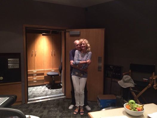 Sami, Sarah and their mom arrived at about one-thirty, and the Shermans arrived shortly thereafter – they heard us finishing up one of the ballads, then we had lunch – Astoburger, naturally. Then they came and listened to three or four more – Sami’s mom told me Sami just didn’t want to leave. So, that was day one. Also roaming the halls – Beyonce and Neil Young. Go know. Here are some actual photographs of our session. First, here’s Sandy and me in the booth.