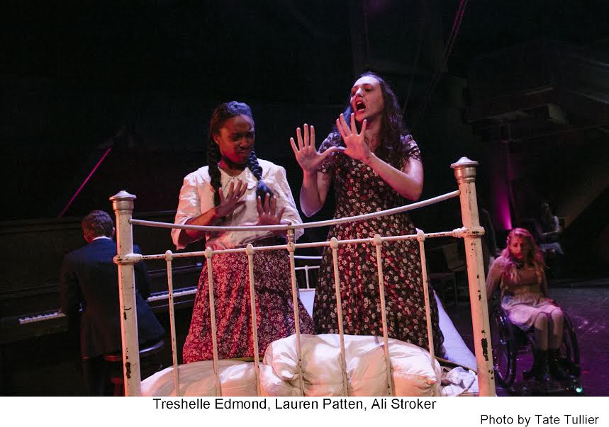 Austin McKenzie as Melchior is the glue that holds the show together. He’s a sensitive but rebellious young man who has lost his faith in God and is quickly losing faith in his elders. Daniel N. Durant and Rustin Cole Sailors create a deeply troubled Moritz who is badgered by his teachers until failure is the only outcome. Sandra Mae Frank and Katie Boeck pair to craft a confused and questioning Wendla, a girl who can’t feel anything, even pain. With a mother who still expects her to believe in storks when her young body tells her differently, her quest can only engender tragedy. This trio is the main focus of the story but there are other standouts in the cast. As Ilse, Lauren Patten delivers a beautiful “Blue Wind.” Joseph Haro as the gay Hanschen leads the cast in “My Junk” and does a lovely duet with Joshua Castille/Daniel David Stewart on “The World of Your Body.” Treshelle Edmond/Kathryn Gallagher unflinchingly play the abused incest victim Martha. Troy Kotsur, Daniel Marmion and Natacha Roi lend great support in all the adult roles.