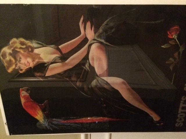 Well, dear readers, I went to a paper show. Yes, you heard it here, dear readers, I, BK, went to a paper show. No, it wasn’t a show with all kinds of stationary or typing paper, it was a collectible paper show. For example, a lot of it was postcards. There were postcards everywhere, of every kind of location, state and city. I don’t really collect postcards, although I do have some nice Hollywood, LA and POP postcards in my curio cabinet. There were a lot of magazines. Many many magazines. I don’t really collect magazines, although I do have almost a complete set of early MAD magazines as well as most issues from 50 to about 300. I do have a bunch of film magazines, and I have bound volumes of several years of the great Theatre Arts magazines as well as bound volumes of Video Watchdog, G-Fan, Scarlet Street and others. I attended with our very own Mr. Grant Geissman. We were surprised that there were very few people in attendance. I hadn’t intended to get anything and neither had he, but in the end we both got something. He got an original Dave Berg (from MAD) sketch, while I got two pretty amazing things. The first amazing thing was a huge Bradshaw Crandall pin-up thing with a calendar thing at the bottom. I’m a fan of Mr. Crandall but that’s not why I bought it – I bought it because of the calendar thing at the bottom. What are the odds of this: I walk into a paper show and see this thing and the calendar thing at the bottom just happens to be from December of 1947, which just happens to be my birth month and year (I was born on a Monday morning – who knew). So, I had to have that. Here are two photographs of it – first the top half and then the calendar thing.