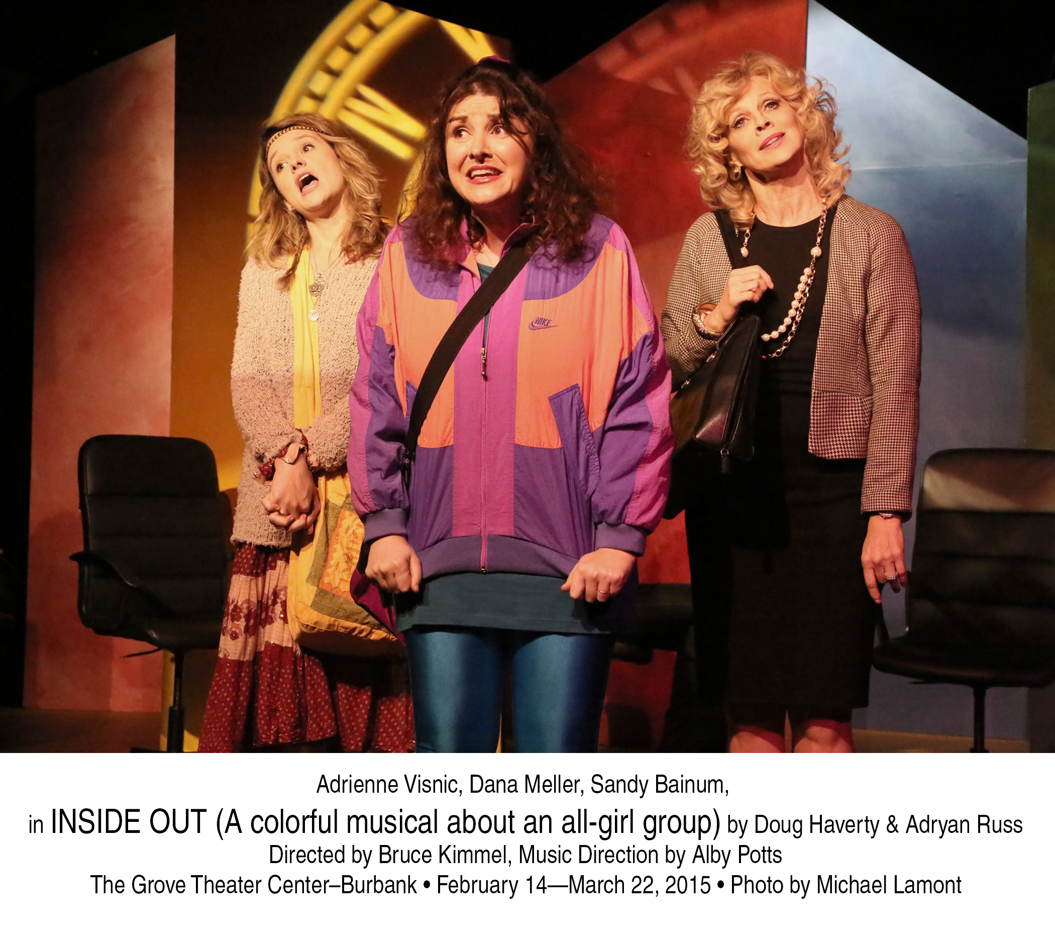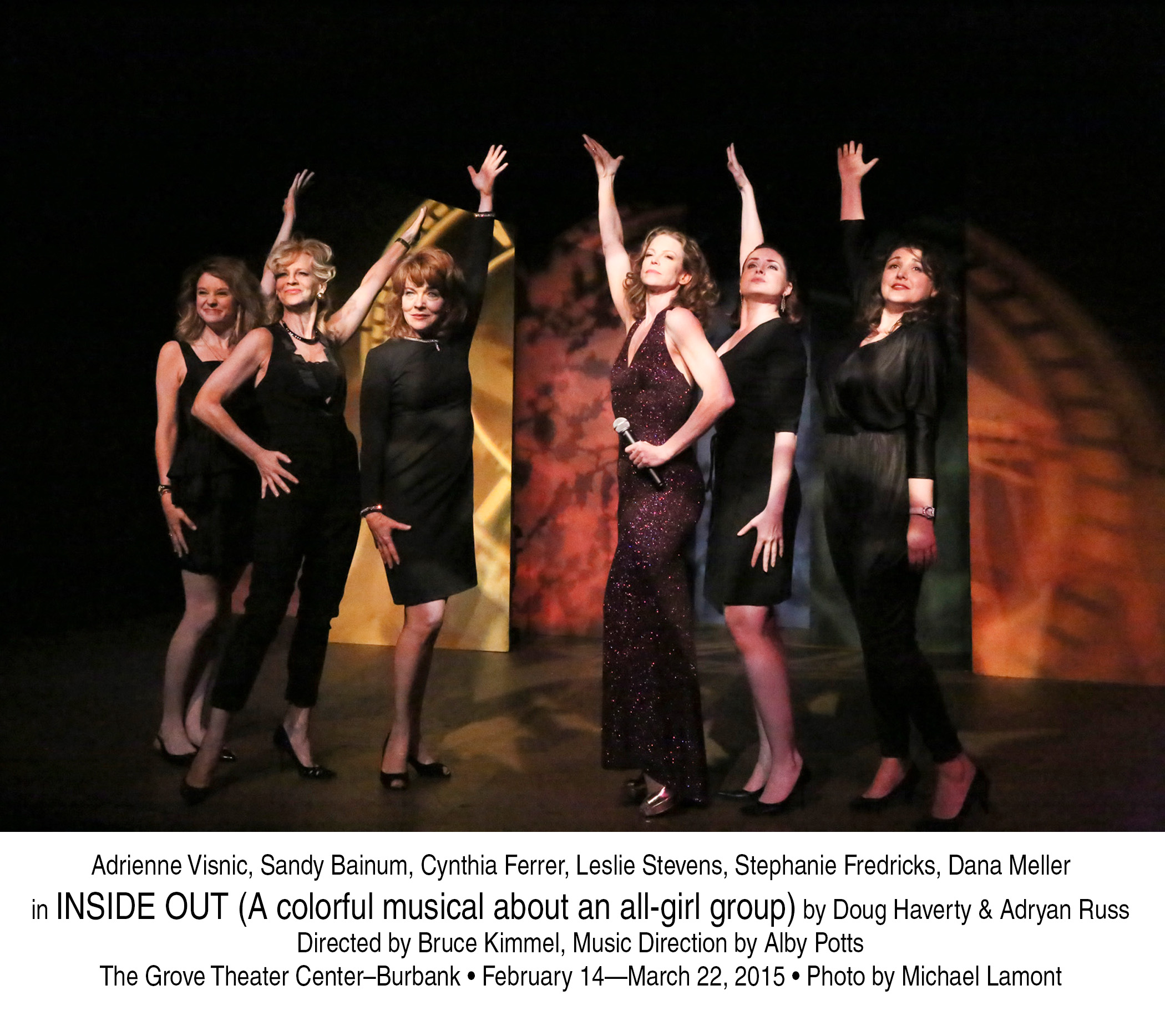 Doug Haverty and Adryan Russ’ musical Inside Out is subtitled “A colorful musical about an all-girl group.” Although there is a Ms. White among the characters, this is not a riff on The Dreamgirls of Motown. This all-girl group is in therapy, presided over weekly by the motherly confessor Grace (Cynthia Ferrer) who at times gets too close to this group and suffers “Grace’s Nightmare” as a result. It may be harried for Grace, but it is fun for the audience. This disparate group of females runs the gamut from sophisticated VP to hippie love child, from son-obsessing lesbian to weight conscious terminal housewife.