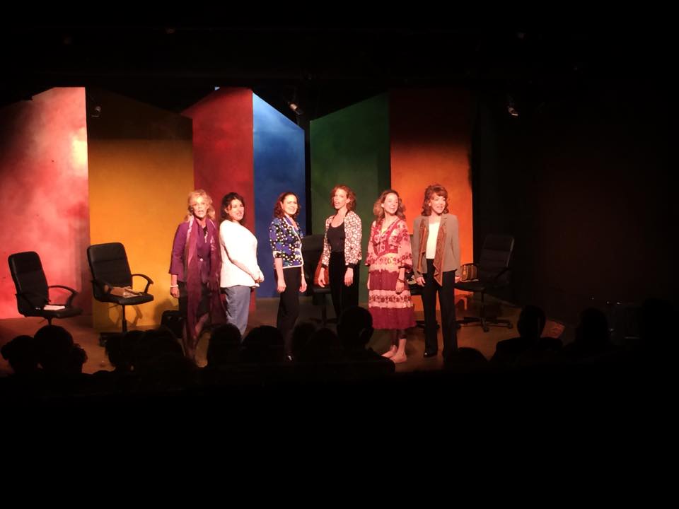 Our matinee was just about sold out and what an audience it was. Our very own Kay Cole and her ever-lovin’ Michael Lamont sat with me. Kim Huber and Heather Hoppus-Werner (mother of Jenna Lea Rosen) were there, too. And I knew quite a few others. And our ladies were ON FIRE. The laughs were huge, the applause was huge, and our two act two showstoppers really did literally stop the show – I thought the roof was going to come off the theater. One is a solo song for the character played by Adrienne Visnic – she got a huge ovation at every single performance – but yesterday it probably could be heard two miles away. I’ve never actually heard anything quite like it in a small theater. This girl is going places and I will champion her until the cows come home. The second showstopper is Dana Meller’s The Passing of a Friend, kind of a gospel homage to the end of her marriage certificate. It always stops the show and I will say that the staging when the rest of the cast joins it is very clever and very exciting and again it literally stopped the show with a HUGE ovation that just went on and on and on. There was an instant standing ovation that didn’t feel fake to me, and we just could not have gone out on a higher note. I am very proud of the entire production. I think the authors, Doug Haverty and Adryran Russ, were pretty happy with it, and I know I achieved every single thing I wanted to achieve. I so love directing and I so don’t do it very often for shows where I’m not the writer – but doing Li’l Abner last year and now this one, I’m ready to do more. And then there was the cast. We held not ONE audition for this show. We just lucked out and got the right people, and casting, as you know, is just about everything. My job is so much easier with a great cast because I just delight in watching them do their stuff, editing and guiding and maybe suggesting a thing or two, but we all find our way together and out of that comes wonderful work. I was especially proud of the staging – it’s hard when so much of the show is six women sitting in chairs, but I kept the pace fast (I was maniacal about it) and when we did get people up and moving around, it looked really good. I was helped immeasurably by the actress who helped me with the musical numbers, Leslie Stevens. She was also superb in the show – she struggled a bit with some of the singing and I simply did not care because she is a hugely gifted actor and her performance was so raw and so touching to me, I just would not have had it any other way. Adrienne and Dana are both comic treasures and two unbelievably creative actor/singers. Cynthia Ferrer, the first actress I went to, was real, warm, funny and just terrific as group leader Grace. Stephanie Fredricks found just the right stuff for her character and did a great job. And Sandy Bainum was the best I’ve ever seen her. A tough role that could be very one-note, we worked really, really hard to find the humanity in her character, so that she didn’t just come off as a relentless bitch. It took a while, but I could not have been happier with her performance. And I would be remiss in not mentioning our three wonderful understudies, all of whom got to play the show. Jill Marie Burke who covered Leslie Stevens, Brittney Bertier who covered Adrienne Visnic, and Amy Gillette, who covered Sandy. I will miss these ladies and this show. I had no idea I would miss the show, but I clearly will.