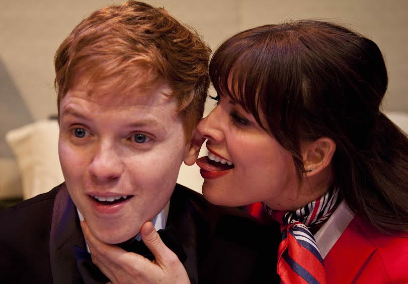 Ever wondered what flight attendants did on their overnight layovers? In the Los Angeles Premiere of Marisa Wegrzyn’s Mud Blue Sky at the Road Theatre Company, they try to party hearty but jet lag overtakes them and the writing. Middle-aged Beth (Carlyle King) just wants to put her feet up and rest her aching back. Her flying partner Sam (Whitney Dylan) wants to party which consists of going to IHOP to meet a former co-worker. They have to leave for O’Hare at 5:30 a.m. and Beth just wants to chill. That means meeting up with her 18-year old high school pot dealer who Sam spies in the parking lot wearing a tux. It’s Jonathan’s (Adam Farabee) prom night but Beth was his first customer and besides, his hot prom date ditched him before 9 p.m. to go off with her friends. Beth owes Jonathan more money that she takes down to their parking lot rendezvous so she invites him back to her hotel room to get more cash. Sam also comes back to Beth’s room with Angie (Amy Tolsky) who has brought along a $400 bottle of cognac.