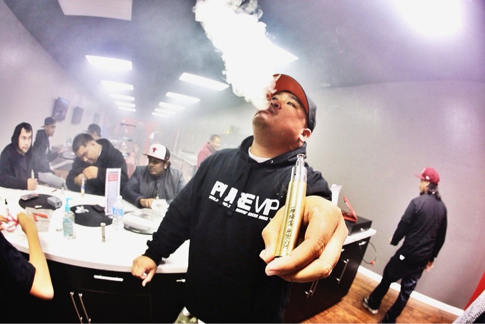 Well, dear readers, let me cut to the chase. Yes, you heard it here, dear readers, let me, BK, cut to the damn chase. As I was walking back to my car after seeing a show last night, I passed by a completely odd sight – a storefront filled to the brim with people and smoke. I couldn’t believe my eyes that in this day and age there would be a place that looked like that. I had to stop in my tracks and then I saw it was a Vapor Parlor. Go in there and you can vape. Yes, we have, apparently, a new verb called vaping. This bunch of yahoo idiot hipsters were smoking e-cigarettes or vapor, but it looked like a poker parlor with a cloud of smoke hanging there like so much death. So, this is a new fad that’s been growing over the past year. My already boggled mind was boggled anew and two-fold. I should have taken a photograph of it to post here but I was so shocked by it that I just finally moved on. I mean, forty or fifty people in close proximity smoking VAPOR. The devolution of our world continues apace. Note to people in close proximity vaping – I cannot tell you how inane you look and are. I do hope we have no vapers here, and I wouldn’t even mind if people did that in the privacy of their homes – but a Vapor PARLOR? Those people have a screw loose, sorry to say it. End of vaping rant. This will give you an idea of what I saw.