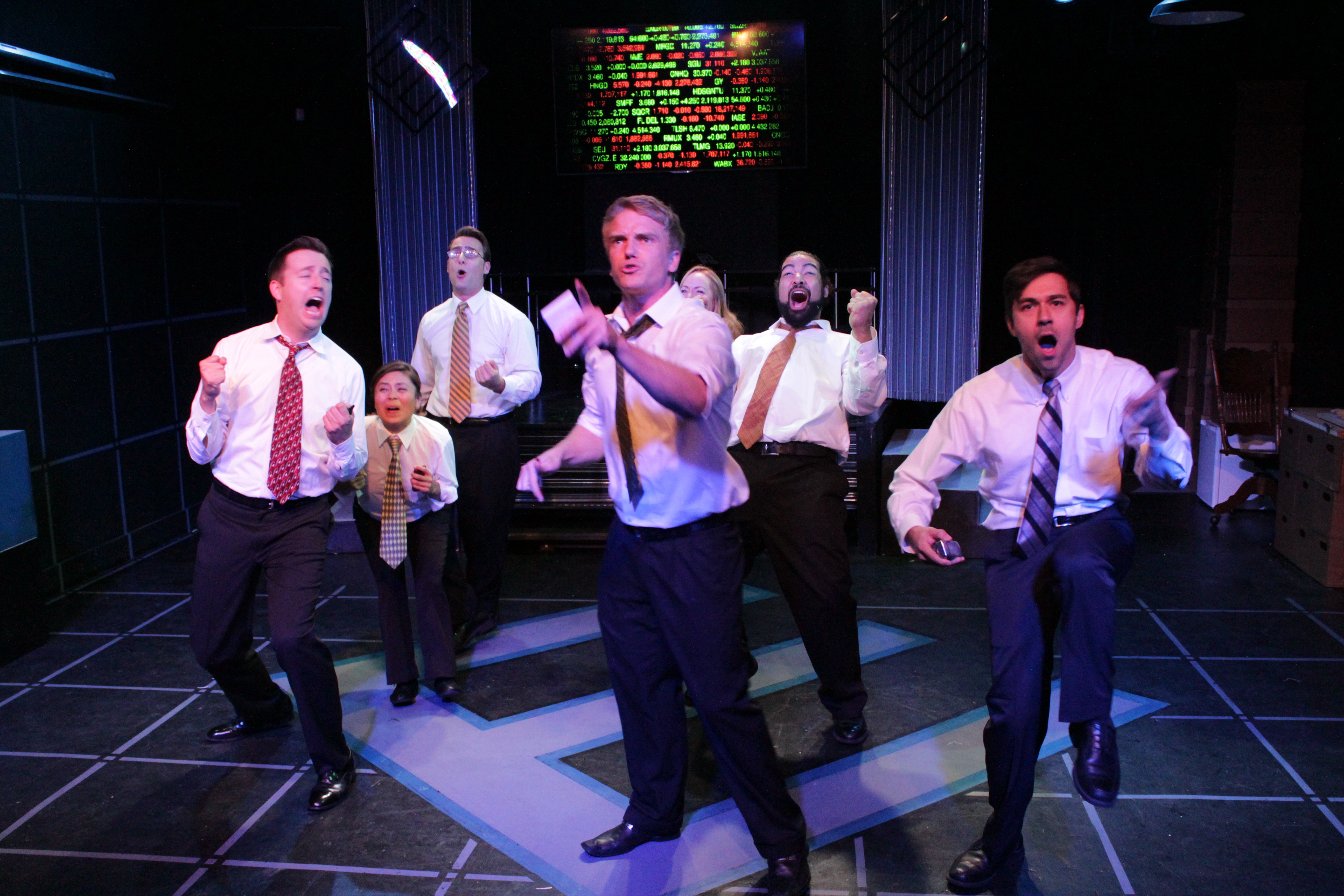 Director August Viverito, with help from choreographer Nancy Dobbs Owen, has injected as much energy and spunk into the evening as possible and the dedicated cast goes at it full bore, but the resultant product lacks emotional depth. Skip Pipo commands the stage as the driven Skilling. David Lombard is fairly bland as Fastow but then he is playing a CFO. Alex Egan and Ferrell Marshall settle for playing Texan caricatures as Enron founder Ken Lay and executive Claudia Roe. The ensemble is energetic in their multiple roles. Viverito’s set & sound design and Tiger Reel’s animations and projections keep the eyes and ears occupied when the mind wants to wander off under the barrage of endless accounting jargon. I would recommend Enron only to dyed in the wool numbers geeks or aspiring CEOs & CFOs currently in business school. For the rest, reading your relatives’ tax returns would probably be more fun.