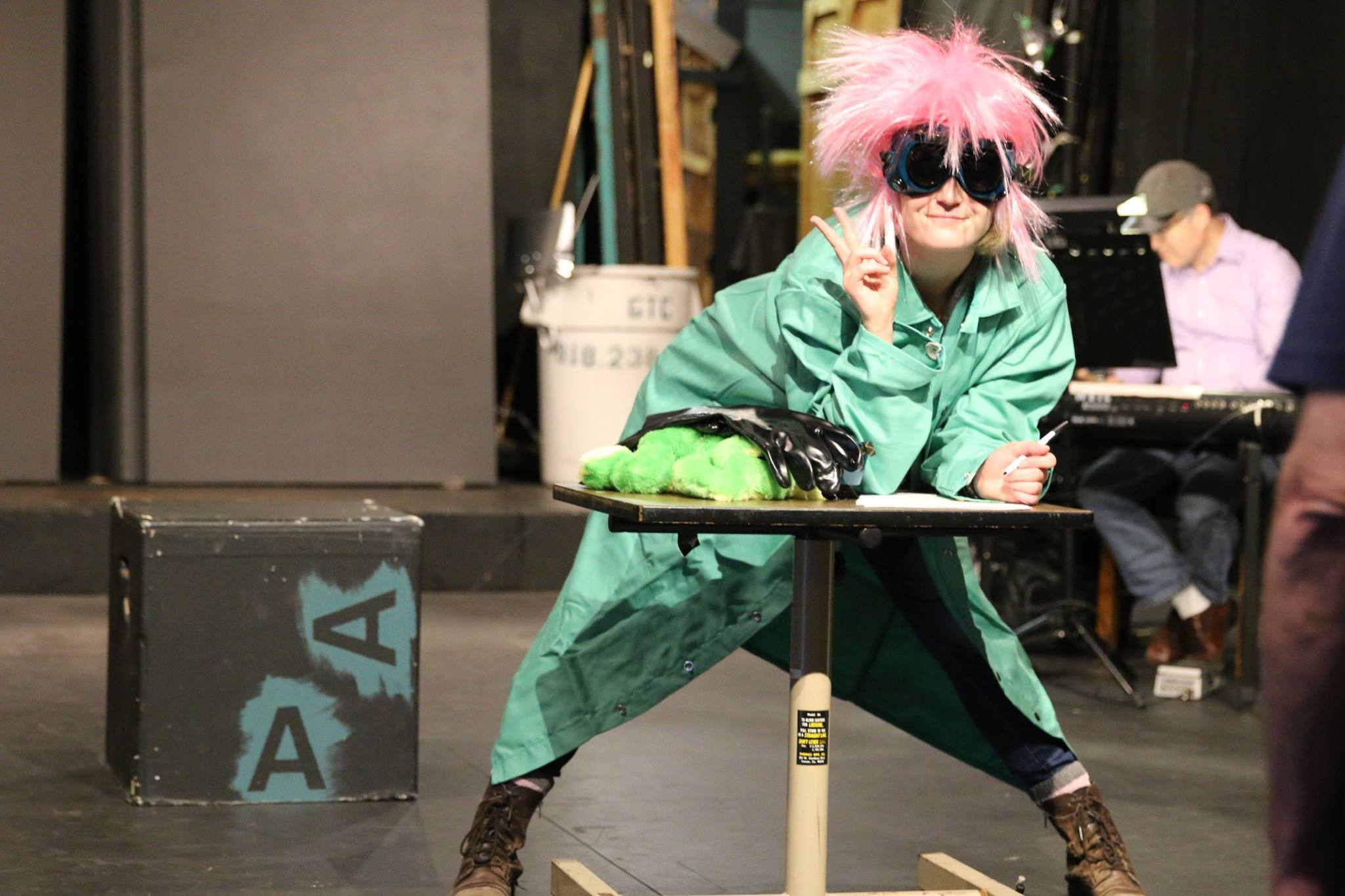 Finally, here’s Sami in her mad science teacher outfit for the number about dissecting a frog. We do that in the number, complete with frog guts, brains, and dismembered limbs. Just a hint to our dear readers – you probably don’t want to sit in the first two rows or you may be called on to participate in this number. Just a warning.