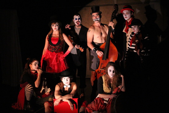 Italian director Federico Fellini’s 1954 film La Strada won the Oscar for Best Foreign Language Film and established Fellini as one of the top directors of his era. Sixty years later the film and Fellini’s private life still have a strong attraction to a lot of people, including Jeff Mills who conceived, wrote and directed La La La Strada at this year’s Hollywood Fringe Festival. The show was the most theatrical of the twenty plus shows I saw during the Festival. It was totally captivating and a feast for the eyes and ears. You didn’t have to know all the details of the film or of Fellini’s life; the story telling elements gave you all you needed to become deeply involved in the work. A very talented troupe of seven performers, in white clown faced makeup, took on a variety of roles as well as playing instruments and manipulating a puppet that stood in for Fellini. They blended together seamlessly as they slowly re-enacted scenes from the film and even more slowly peeled back the layers of Fellini’s life and relationships. Blythe Foster was truly Chaplin-esque, showing every emotion effortlessly on her face and in her posture, in the role of wife/muse/film star Giulietta Masina. Jeff Mills mainly played the role of film star Anthony Quinn who starred in the film as the sadistic strong man Zampano. Jim Connolly composed and performed his original music which added immensely to the mood of the piece as did Erin Davison’s lights and Dana Fox Ortner’s costumes. Hopefully you will get another chance to see La La La Strada by the proboscis theatre.