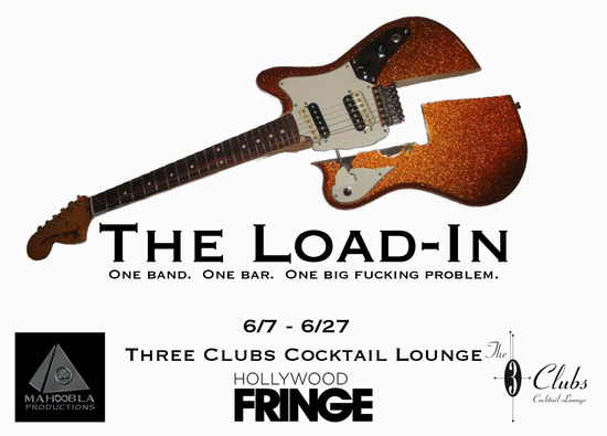 David Svengalis has spent time coordinating Fringe Festival shows at the Three Clubs venue in Hollywood. Now he has written and directed The Load-In, a sort of insider’s look at what happens before the audience arrives. The Wax Robots are scheduled to perform their first gig at the club but nearly everything seems stacked against them. The drummer, appropriately named Crash, has crashed on the stage floor in a drunken stupor after consuming a pitcher of vodka after his girl dumped him. Guitar player Riff has smashed his hand in a car door while unloading equipment. Lead singer Mike has discovered he has a food allergy at a very inopportune time. As his throat is closing, he finds out there will be a record producer in the audience. Even all of flower child keyboard player’s Melody sage and candles and crystals seem doomed to provide a happy venue. But in the true tradition of show biz, the show must go on and the band launches into their opening number as the Fringe show ends. Svengalis has written a fun look at the backside of performing. Groupies can view it as a behind the scenes look while industry vets can view it and say “yeah, that’s happened to me.” It’s a quick-paced hour as the band sets up and the bar’s staff cracks wise. The cast seems to be having fun and so does the audience. Svengalis gets one of the night’s biggest laughs when he jury rigs the disco ball. It’s just a shame the guy with the pumpkin sax never showed up.
