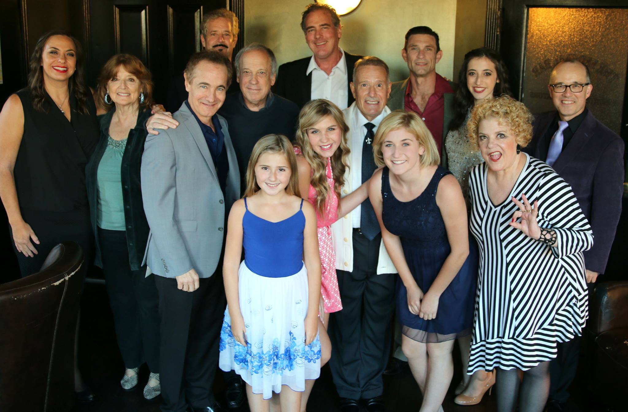 We had a packed to the rafters crowd, oversold, and they were a wonderful audience. I always know right in the beginning of the opening patter how much I’m going to have to work to get them with me and the show, and I knew instantly they were great – huge laughs throughout the opening patter, including an accidental gift that just happened and that I went with. The Pacific Overtures/Peter Pan What If went great – those two long cuts I made made all the difference in the world. Add to that having a perfect cast doing really fun material and you have a good time. It was a long show, but it never really flagged. I cannot say enough about Brennley Brown (stunning Not While I’m Around), Jason Graae (hilarious as always and then that gorgeous voice on She Touched Me), Damon Kirsche (tearing up the jernt with Ten Percent, a cut song from Chicago, and his other two songs were glorious), Sharon McNight (getting howls of laughter with Haiku and then blowing the roof off the jernt with her amazing arrangement of The Man I Love), Darcie Roberts (what a powerhouse – doing He Has a Way from Busker Alley – she starred in the show opposite Tommy Tune – and loving her from the audience was Richard Sherman, who wrote it with brother Robert – and then doing an amazing Don’t Rain on My Parade), Hadley Miller (eleven and killing it with The Dressing Song from The 5,000 Fingers of Dr. T), Jenna Lea Rosen (doing a gorgeous put-together of Here’s That Rainy Day and Now When the Rain Falls), Sami Staitman (doing a bang-up job with Note to Boys, which is from Welcome to My World), Sammy Williams (what a joy to have him recreating numbers he did thirty-eight years ago in my musical, Stages), and our very own Robert Yacko (who introduced a brand new song I wrote for an upcoming project – my little paean to the magical place that was called C.C. Brown’s in Hollywood – his rendition was perfect – and then doing our very own Skip Kennon’s great song She Dies along with the title song from his musical of Jack Finney’s Time and Again). John Boswell was amazing as always, and Alby Potts played for Sami’s song, as he’s the MD for our show. So many great folks in attendance, including two original A Chorus Line members, Kay Cole and Ron Dennis (cheering on cast mate Sammy Williams), Armelia McQueen, Barry Pearl, Patricia Ward Kelly, Michael Kerker, the Shermans, Walter Painter, our very own Amy and Mark, neighbors Tony Slide and Bob Gitt, Shelly Markham, and others my brain is to tired to remember. And, of course, Adryan Russ, our mighty co-producer. And now on to October. Here’s our merry troupe of players – left to right: Darcie Roberts, Adryan Russ, Jason Graae, Robert Yacko, Li’l Ol Me, Hadley Miller, Brennley Brown, John Boswell, Sammy Williams, Sami Staitman, Damon Kirsche, Jenna Lea Rosen, Sharon McNight and Alby Potts.
