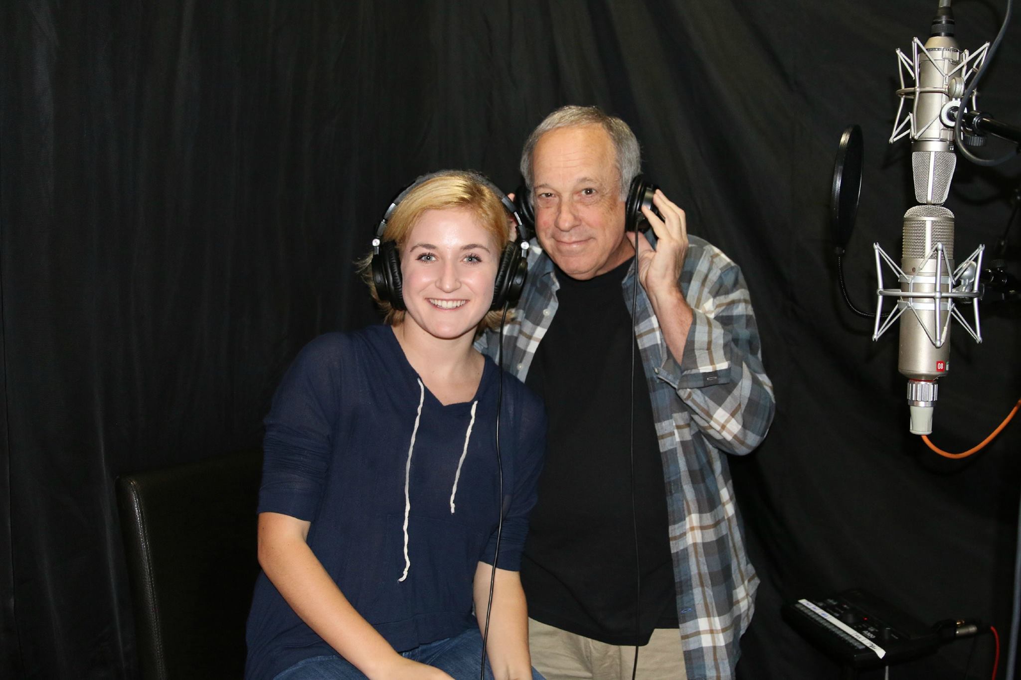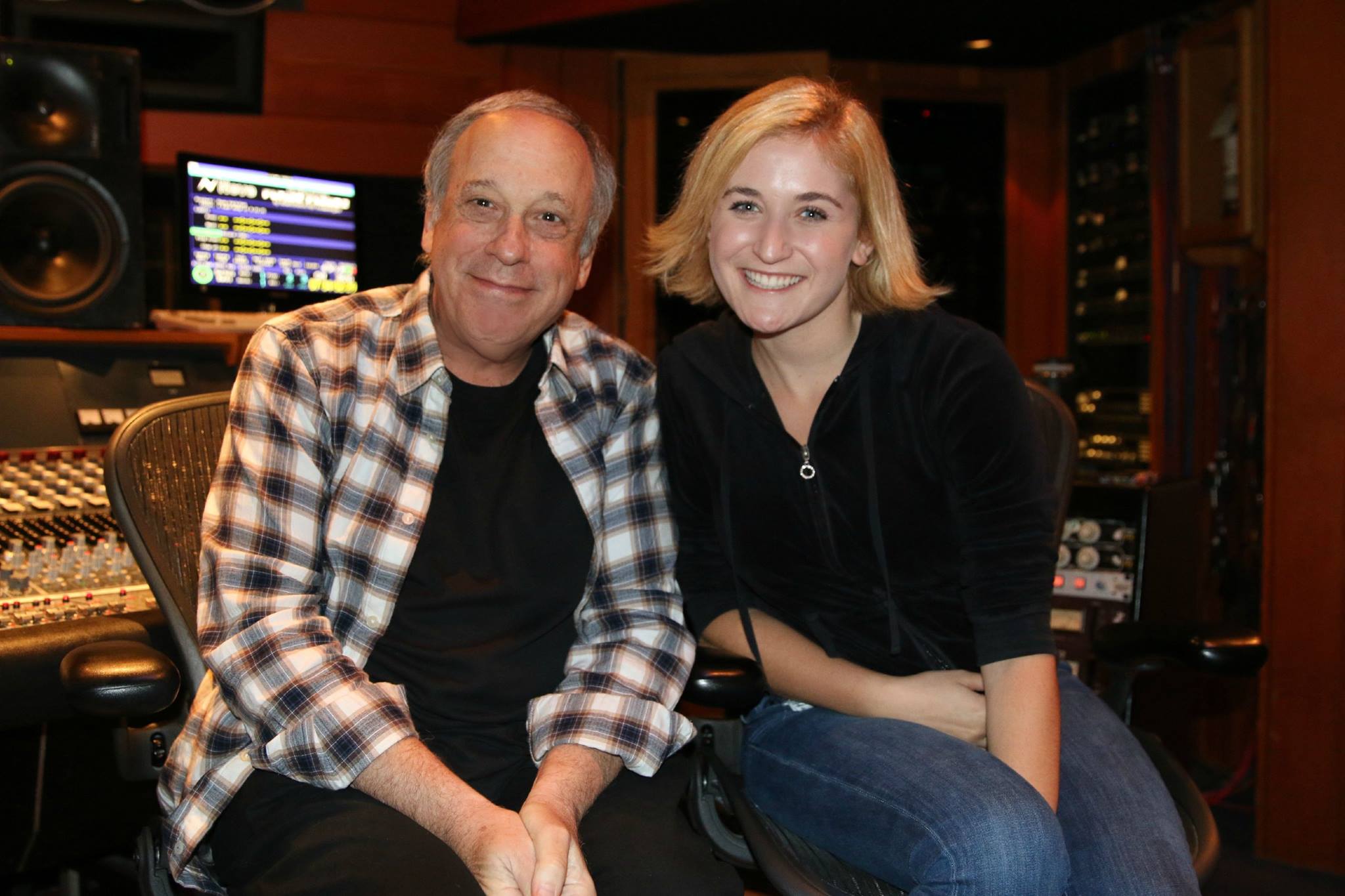 Well, dear readers, we had our second session and it, like the first session, went very well and was lots of fun. I knew there would be one song where I’d want to really take my time and nitpick and that was the second song we recorded last night. We got a track I was happy with, and then I just kept redoing the vocal – first getting a really good basic take, and then finessing that and patching in lines as we needed them. On stage, Sami does it beautifully, but in the studio it’s a whole other ball of potatoes and I really was very specific about the feel I wanted in terms of the interpretation – it took a while but it came out really well. The rest were much quicker and easier than that. We really only had five full songs to do and then the opening number reprise. We finished all of that in the first two hours, and then we ordered some food and began listening straight through, just so I could make sure I was completely happy with everything. During the course of that listening session, I had Sami go in a few times just to replace a word or line that she or I wasn’t happy with. That all went very quickly. We had food from Café 50s – I had a BLTA, and Sami had fries and onion rings and sweet potato fries (shared with her dad, mom, and Alby, whose sweet potato fries they were) and John had, I think, a salad. Here are some photographs. First, Sami and me in the booth. Note the two mics – one was a Neumann U-47 and one was a Neumann U-67, both wonderful tube mics. We wanted to hear how Sami’s voice sounded on each – before we listened, I predicted it would be the Guy Haines mic – the 47, and the instant we heard it that was exactly the case. So, away went the 67.