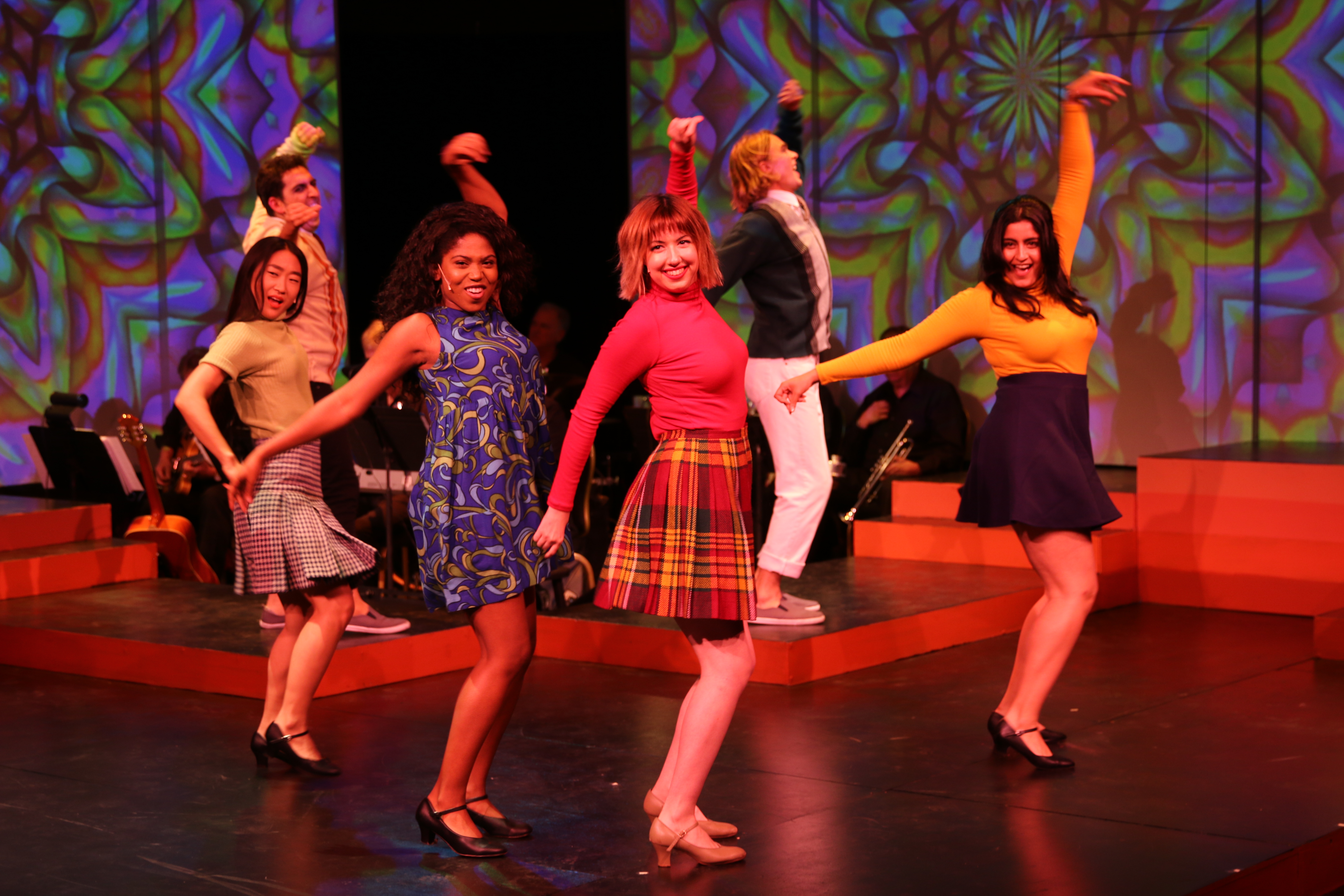 Wayne Moore, Michele Brourman, Karen Gottlieb, Grant Geissman also contributed songs while David Wechter added some Hollywood insider sketches. Lanny Myers wrote the dance music that the young cast grooved to in the “Hullabaloo” segment, with great choreography by Cheryl Baxter. The cast of 14 sounded great in the ensemble numbers while some voices were stronger that others when they went solo. Director Kimmel’s pacing kept the show moving at a fast clip as he gave each cast member a chance to shine. Musical Director Richard Allen led the six-piece on stage band that really rocked it like they were playing the Whisky a Go Go. Natalya Shahinyan and Min Lee’s costumes perfectly brought back to life the various styles and distinctive looks of the various decades. The projections of all things L.A., well executed by Art & Soul Design and Projections Supervisor Vern Yonemura, triggered many memories. As did this entire evening.