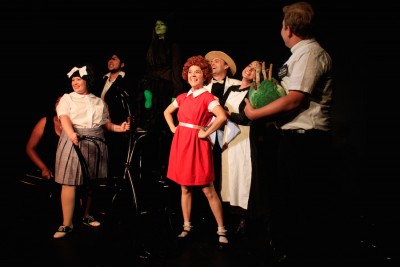 A group of iconic musical theatre characters are living together peacefully in The Land of Musicals—Danny Zuko from Grease (Christopher Bunyi), Harold Hill from The Music Man (Nick Emmett McGee), Elder from The Book of Mormon (Taylor Minckley), Hairspray’s Tracy Turnblad (Ally Mulholland), Jean Valjean from Les Miserables (Matthew Noah), Wicked’s Elphaba (Suzanne Petrela), Maria from The Sound of Music (Brianne Sanborn) and the titular orphan from Annie (Allie Costa). They have gathered to celebrate the birthday of one of their own, Dreamgirls’s Effie (Levanna Atkinson-Williams. Mark from Rent (Brad Simanski) is there to record it all. When Tracy brings a strange plant she found as a gift for Effie it explodes onto Elder’s face and the fun really begins. As the creature continues to grow and the numbers of the cast continue to diminish, various would-be heroes emerge only to be vanquished until one of them morphs into a bitch-slapping Ripley for a rip roaring final battle.