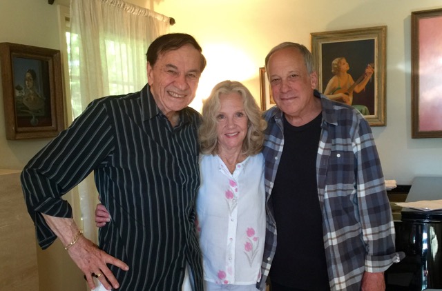 Well, dear readers, I must write these here notes in a hurry so I can get to bed and get as much sleep as possible before the long day and evening. So, let me begin by saying that those who’ve read Kritzer Time know that when I was thirteen my parents were going to send me to Jew camp for two or three weeks. That was horrifying to me. But it was more horrifying because I’d seen a movie I’d fallen in love with – something called The Parent Trap, and I’d fallen head over heels in like with the film’s two stars, Hayley Mills and Hayley Mills. I saw it as many times as I could before being carted off to camp, and I also took some money from my father’s pants pocket and went to the May Company and bought what was then the only battery operated portable reel-to-reel tape recorder. I took that to the Vogue Theater and recorded the songs and some dialogue so I’d have my Hayleys with me at camp. And now, fifty-five years after I saw The Parent Trap and had my twin Hayleys crush, Hayley came to my house. I’d spoken to her a couple of times prior to this, but she wouldn’t have remembered. So it was like meeting her for the first time and she’s a total wonder – funny, irreverent, still beautiful, and we had a whole ton of fun. Seeing her and Richard Sherman together again was great and they clearly adore each other. We all laughed a lot, and then she and Richard rehearsed the patter I’d written them and then they sang Let’s Get Together together and it was absolutely magical. After they ran it, I helped them split some of it into solos, and they ran it again and it’s just incredible and if it doesn’t bring the house down (and perhaps to its feet) I don’t know nothin’ ‘bout birthin’ no babies.