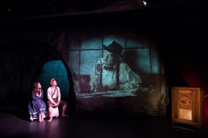 The 24th Street Theatre specializes in TYA, Theatre for Young Adults which is distinctly different from children’s theatre. They don’t dumb it down or pander to the youngsters; they expect them to be able to accept a more grown up approach to the stories they tell. The adults in the audience will also appreciate the literate and solid story telling. Their latest offering is the classic Grimm Fairy Tale of Hansel & Gretel, only updated to Appalachia America during the Great Depression. Bryan Davidson’s Hansel & Gretel Bluegrass is an inventive take on the story, beautifully envisioned by director Debbie Devine and her talented crew of tech artists (Keith Mitchell’s scenic design, Matthew G. Hill’s video design, Chris Mocatiello’s sound design and Dan Weingarten’s lighting design). The Get Down Boys perform a bluegrass score, firmly setting the mood of the piece.