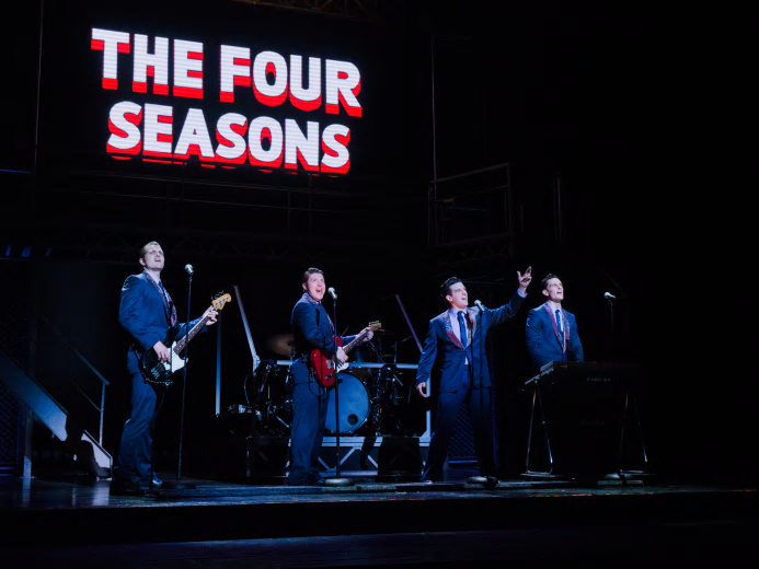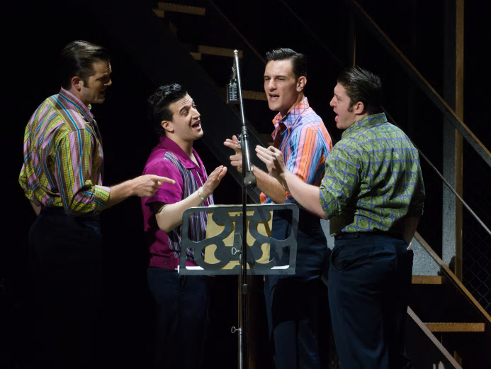 The Four Seasons is not just a classical composition for violins by Italian composer Vivaldi. The Four Seasons were a famous American rock and pop band in the 1960s and 1970s, inducted into the Rock and Roll Hall of Fame as one of the best-selling musical groups of all time, having sold over an estimated 100 million records worldwide. They achieved fame again in 2005 when the Des McAnuff helmed musical Jersey Boys, which started at the La Jolla Playhouse in 2004, opened on Broadway where it won the Tony Award for Best Musical and would run for 4,642 performances, finally closing just this past January. There have been National Tours on the road since 2006 and one is currently at the Ahmanson Theatre. Jersey Boys is a jukebox musical in that every song is a hit song and if you are of a certain age, you very clearly remember the lyrics and bop along to the music in your theatre seat. It’s really a musical biography that brings the lives of the four original band members vividly to life. Unlike most jukebox musicals, the songs aren’t shoehorned into a script to feed an emotion or a scene it wasn’t really written for. Here the songs are like a Judy Garland or Frank Sinatra farewell concert—and then I recorded… And it works brilliantly.
