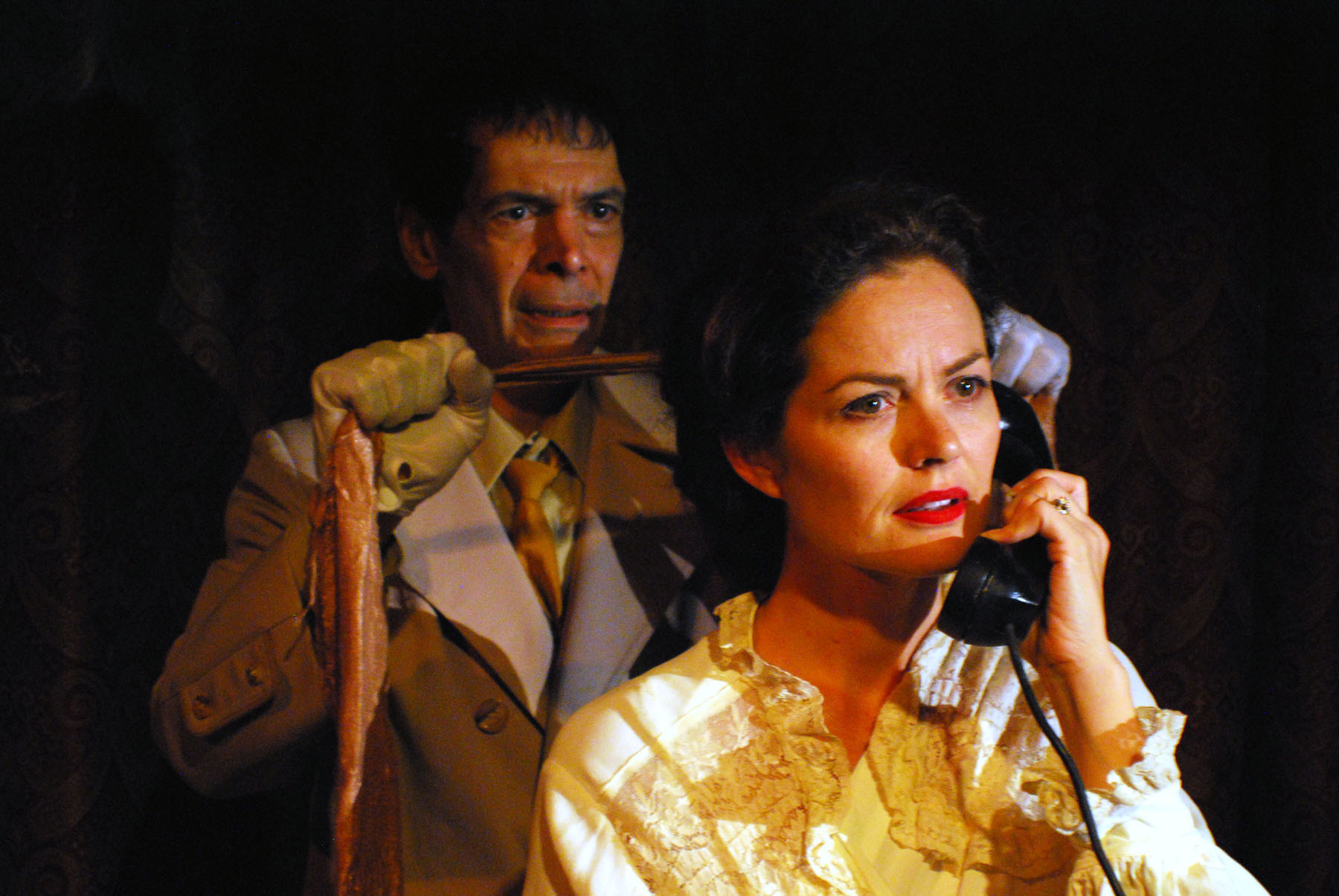 Here’s our very own Doug Haverty as Inspector Hubbard, doing a round of questioning with Carrie Schroeder.