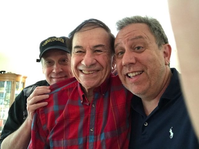 Then Richard Sherman came and we played it for him and he got very emotional because I read the two scenes that break the song up into three parts. Originally the song was basically all song at once. The two scenes were heavily revised by my very own self and they work quite well. So, Richard was very happy with it. We talked about the reading we’ll do in July, and yakked about other things – it’s always a good time when we’re together. In fact, here are the three musketeers, very happy after singing through the song (yes, Richard joined in, too).