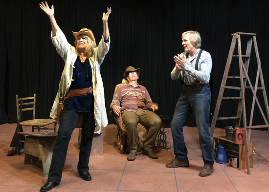 Irish avant-garde playwright Samuel Beckett’s 1957 classic Endgame is the jumping off point of playwright Steve Nevil’s Welcome to Heretofore at the Hollywood Fringe Festival. Nevil has set the action in a two-structure town in the middle of nowhere in the American West of the early 1880s. Nevil’s two main characters are the blind and confined to his chair Mr. Barker (Nevil) and Sno (Doug Haverty), a younger man who seems to be Barker’s caretaker. Sno checks in every day with Barker, who functions as the town’s Mayor and Sheriff. But nothing much happens in their lives—they have an unfinished checkers game from last winter. Bursting into the cabin from the howling wind outside is Fix (Leslie Caveny), just stopping by on her way to marry her mail-order-spouse in another town. Sno is fascinated by Fix and while Barker sleeps, he and the boisterous female bond. It’s nearly a case of love at first sight as the two find much common ground. Sno invites Fix to visit his nearby cabin, leaving Barker on his own for the first time in a long while. Is this the end of one friendship and the beginning of another. Existential questions indeed which are not readily answered in the swiftly moving 40 minute one-act under the tight direction of Elayne Heilveil. The trio of actors mesh together to make for an intriguing and fun outing.