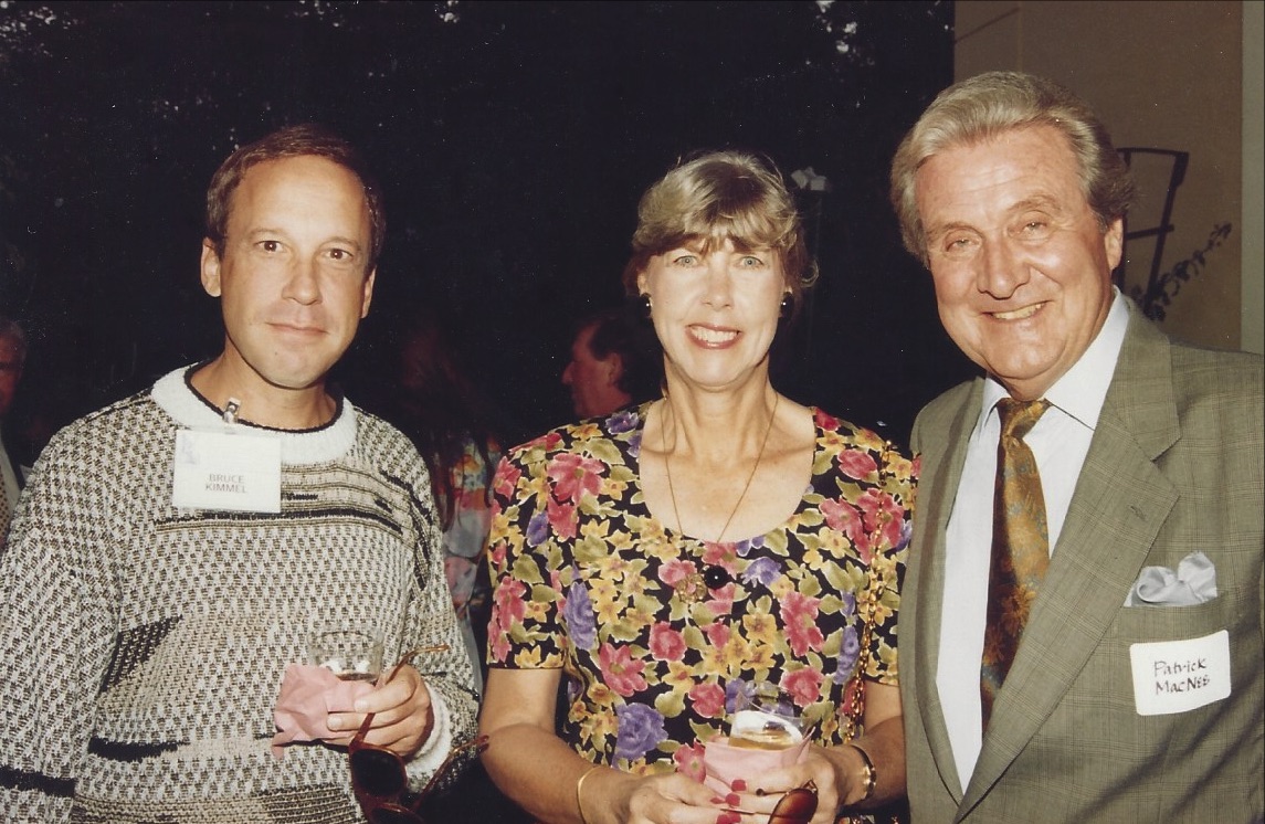 Here is a photograph taken in the early 1990s at a BAFTA event, when I was a member of BAFTA. Not sure who the lady is, but the man on the right is Patrick Macnee.
