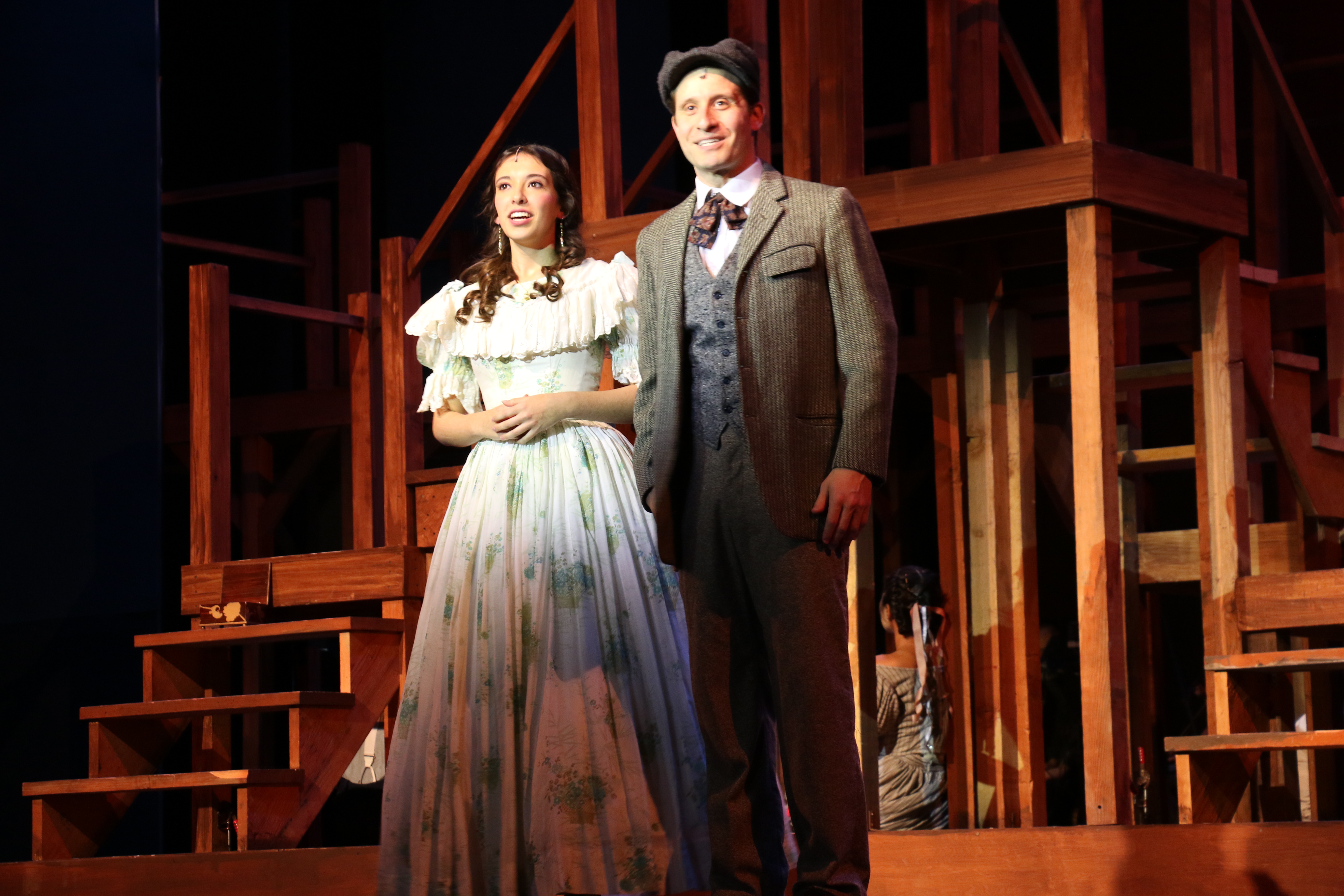 As with most stage biographies, liberties were taken with real life events, but there were two instances that really niggled my logical mind. The 1853 miners sing about “the golden spike” which was not driven into the ground to unite the transcontinental railroads until 1868. After jumping the action ahead 20 years, circa 1873, a character comments that a war may soon be fought in America over the racial issue. The Civil War ended in 1865.