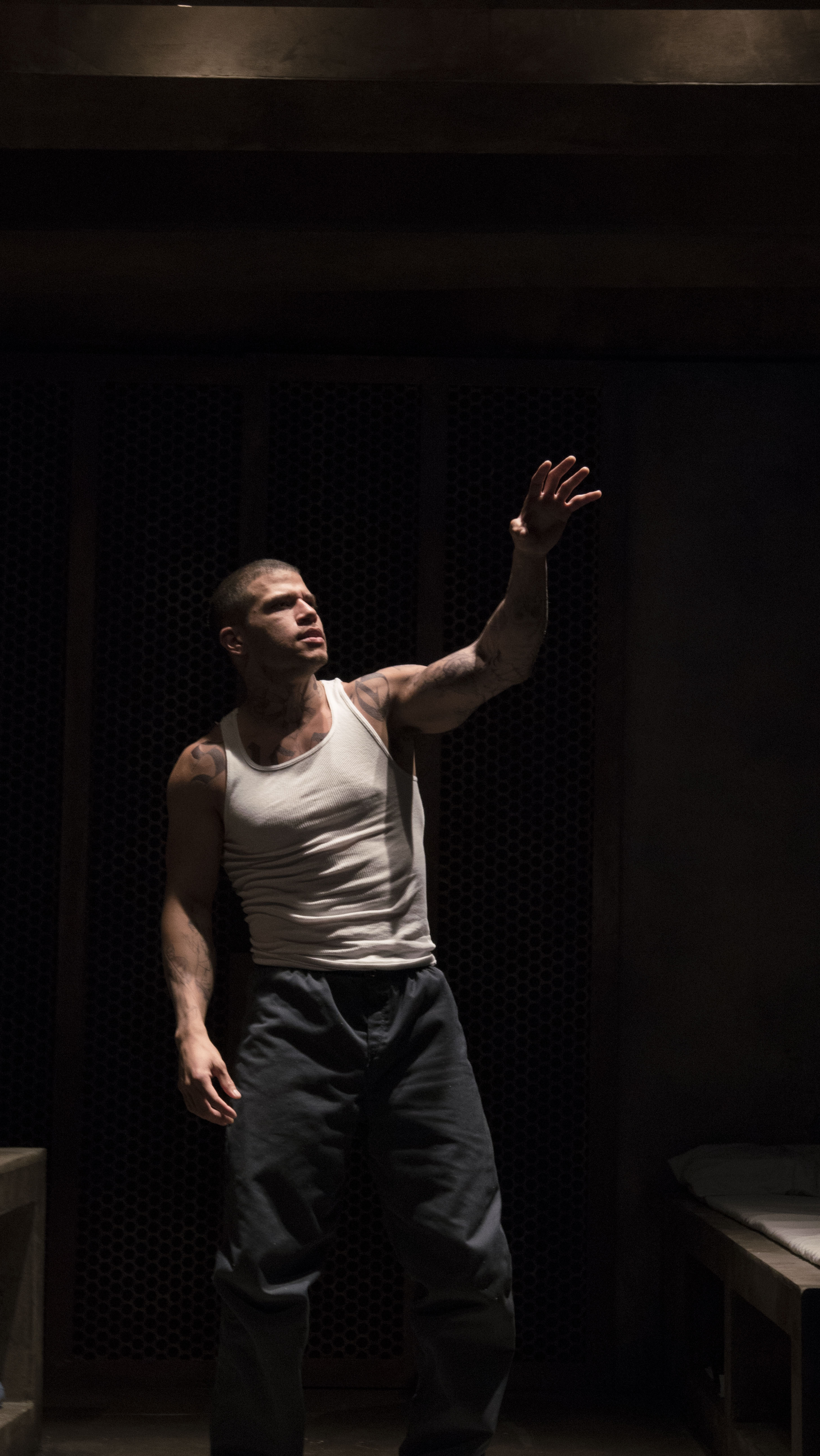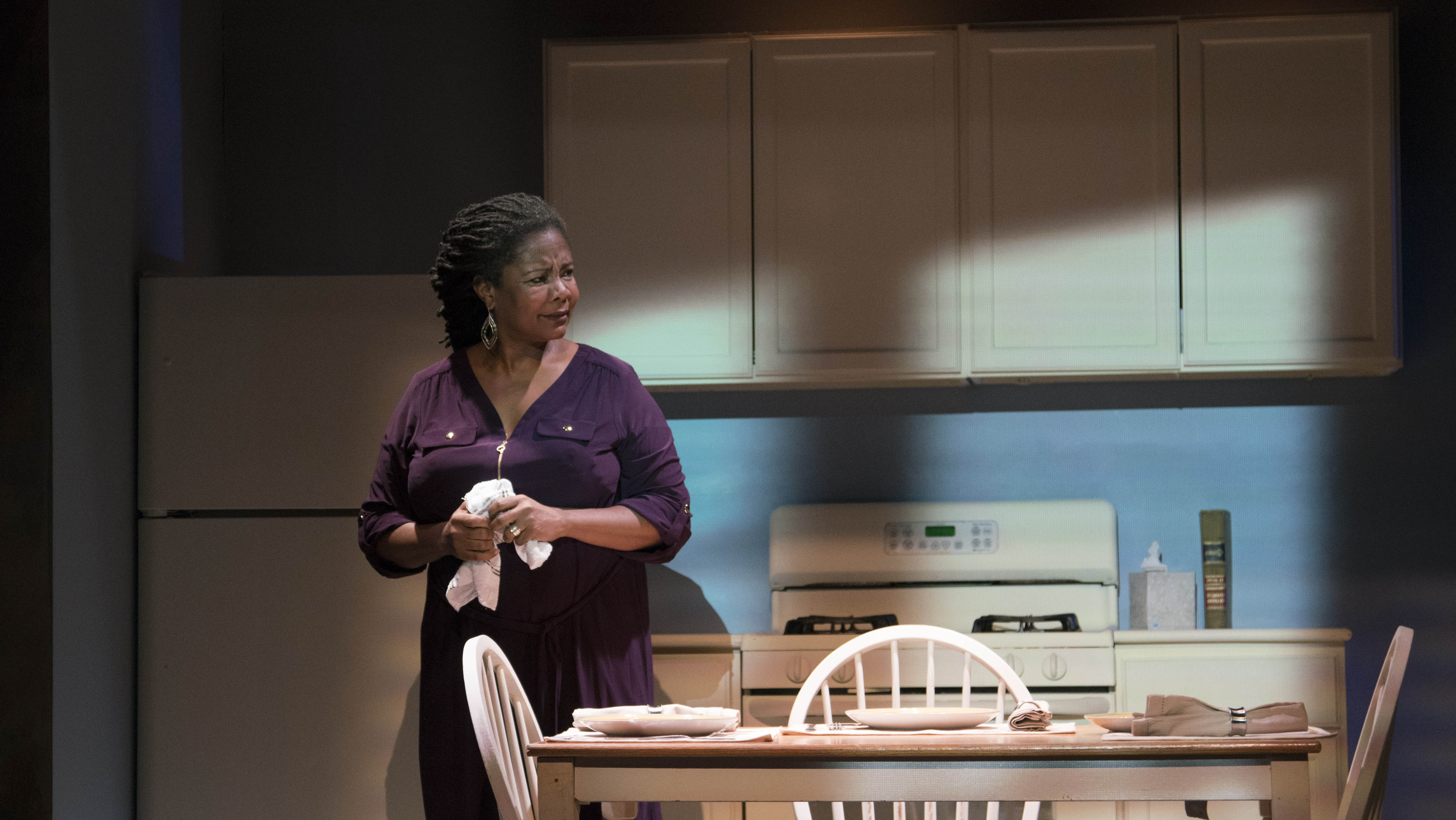 Anna (Tonya Pinkins) told her story from the comfortable environs of her kitchen where she still has a habit of setting the table for three even though she has been living alone for years. Her policeman husband died at an early age from a heart attack. Her son followed in his father’s footsteps, became a police officer and ended up being shot and killed by a drug addict during a burglary gone wrong. Camon’s writing did not add much new to the long literary litany of gangs, prisons, violence and police deaths. Even though their stories don’t seem to have any noticeable connection, you knew these two lost souls will somehow manage to connect. What made this two-hander watchable was the sharp direction of Bart DeLorenzo who kept the static stories moving briskly. Francois Pierre Couture provided a compact cell as well as a friendly, homey kitchen setting side by side on the LATC stage. Hernandez provided enough variation in his portrayal of Gabriel to keep your interest. Pinkins delivered more emotion in a look or a movement than was present in paragraphs of dialogue. She was a marvel to behold.