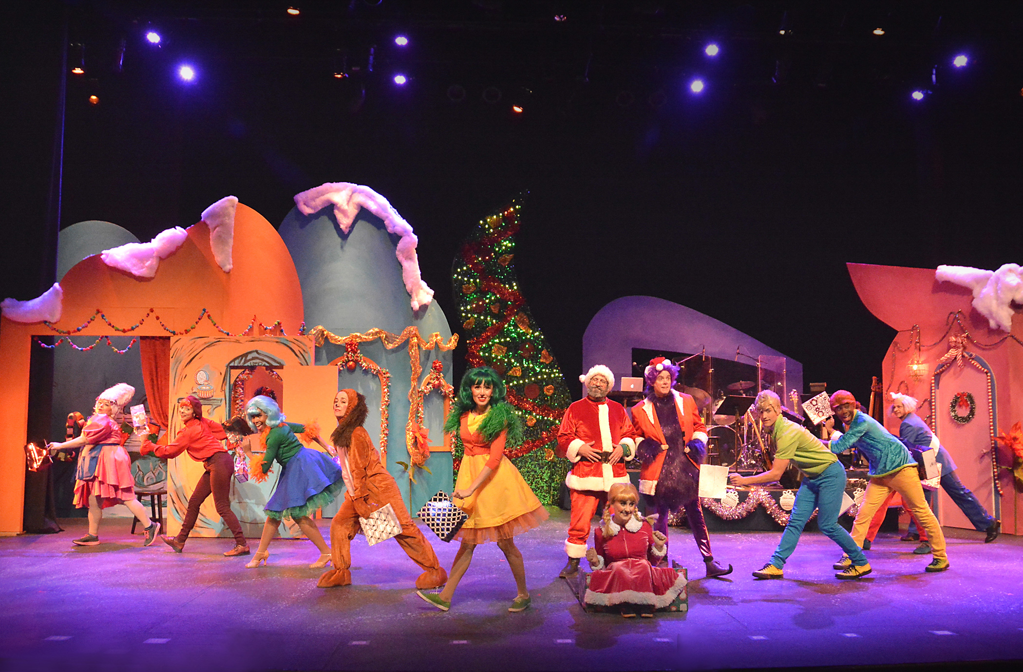 Prince, the innovative musician/songwriter from Minnesota may be gone but he is not forgotten. The Troubadour Theater Company pays the Purple One tribute in their newest show How The Princh Stole Christmas! which premiered at North Hollywood’s El Portal Theatre during the current Holiday Season. Such Prince classics as “Raspberry Beret,” “Little Red Corvette,” “Let’s Go Crazy!” and many more got the Troubadour make over to their lyrics. The songs were rocked out to perfection by the four-piece on stage band led by musical director/drummer Eric Heinly. The baker’s dozen members of the cast were in fine voice and the Purple One would have been pleased to hear his music tell the classic tale of how a dastardly grump with tiny hands and heart found love and joy in the holidays.
