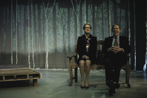 The current production at Actors Co-Op has been skillfully directed by Ken Sawyer in the intimate confines of the Crossley Theatre. The audience comes to feel they are nearly seated on the same bench as the negotiators. Sawyer has given his talented duo a lot of movement and the simple setting by Ellen Lenbergs presents several different views so the action never becomes static. I am not sure any real arms negotiator would like to match skill sets with Phil Crowley’s Andrey. His performance is a master class in subtlety and panache. But he is evenly matched here by Nan McNamara’s Joan, who is being given her first chance on a big stage and she really doesn’t want to muck it up. She is desperate to make a deal and she soon learns the fine art of negotiating. They are a formidable duo. This is the fourth time Blessing has allowed a sex change to one of his characters and it really gives the play a striking immediacy. It is easy to see a Hilary Clinton or a Madeleine Albright or even a Condoleezza Rice sitting on that bench with the shrewd power of their sex giving the opposing side some stiff competition. A Walk in the Woods is a joy to experience.