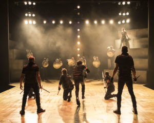 Rafael Goldstein commands the stage as King Henry as the character commands his troops. He matures quickly when faced with opposition, both foreign and near-at-hand. Kasey Mahaffy as the Dauphin and Frederick Stuart as his father, French king Charles VI, lend strong support. The tight knit ensemble skillfully and exuberantly executes Kenneth R. Merckx, Jr.’s spirited and extremely physical fight choreography.