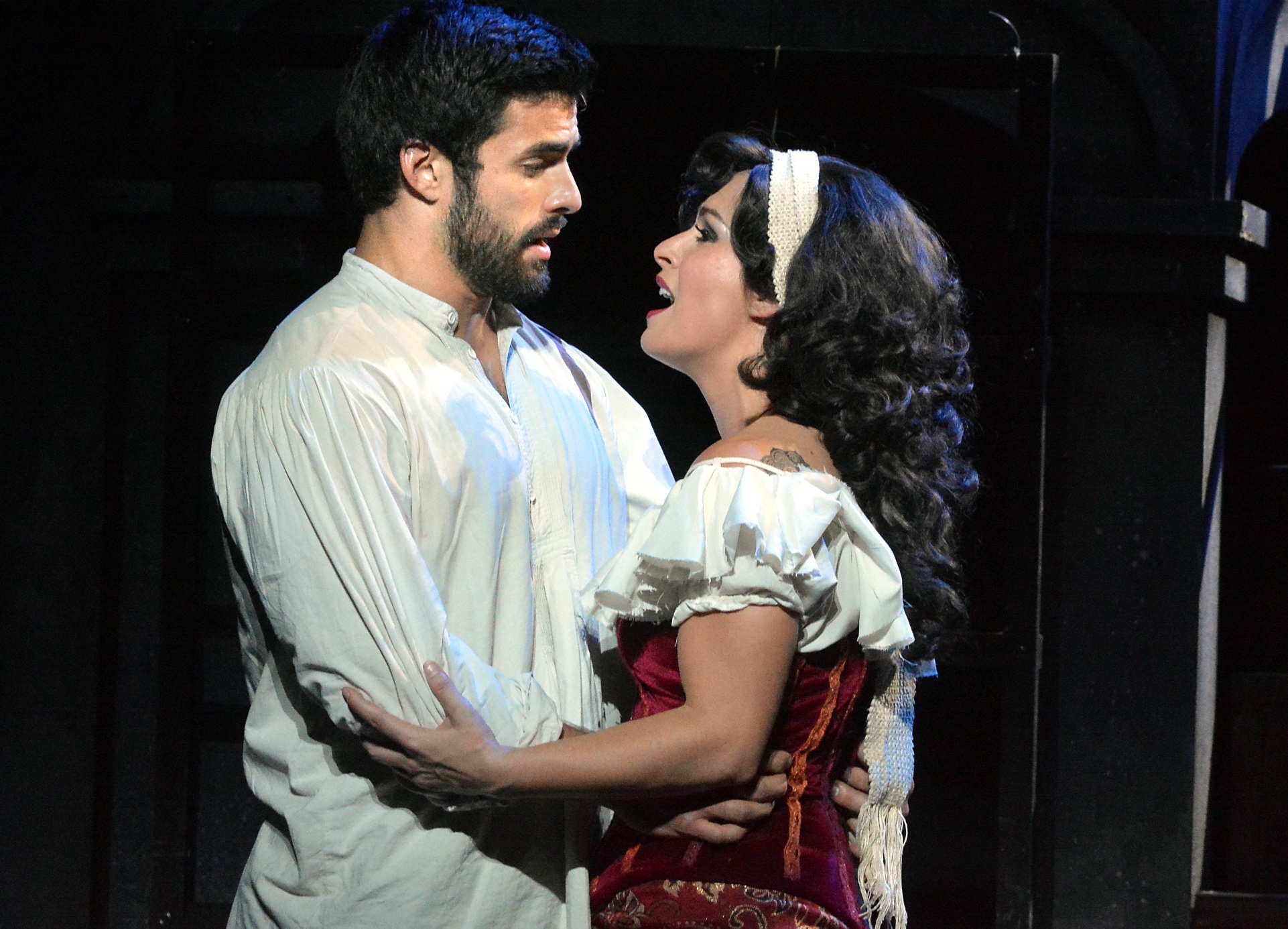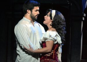 Adam Hollick and Cassandra Marie Murphy as doomed lovers Phoebus and Esmeralda