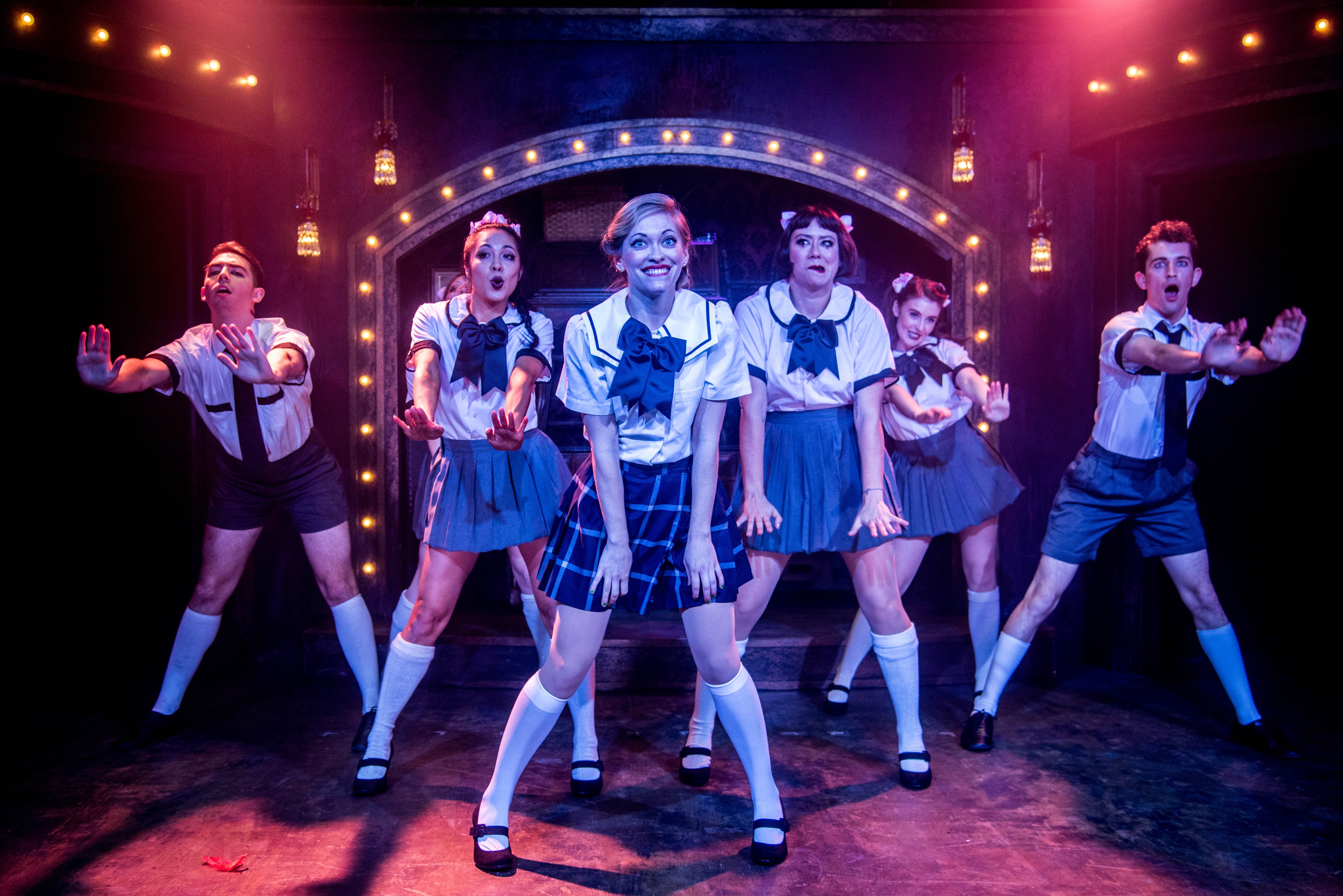 Musical director Anthony Zediker makes the four-piece band sound like a full pit orchestra and Cricket S. Myers’ sound design perfectly mixes the vocals with the music. Michael Mullen’s costume design is a show unto itself, from the leather and chains bedecked Emcee to the women’s peignoirs and intimate wear to the layered schoolgirl outfits that get stripped off piece by piece during the raunchy “Don’t Tell Mama.” I saw my first production of Cabaret in 1968 and have seen many more since then. This latest will remain with me for a long time to come. Don’t miss it!