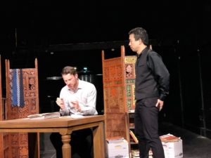 The highlight of Bartram’s score is “The Butterfly,” soaringly sung by Schufman. The score is a mix of comic (“Mrs. Remington”) and the bittersweet (“Saying Goodbye”). Schufman has the more serious role and manages the light and dark of it very well and has a lovely singing voice. Koh has a joyous stage presence that makes his at times outrageous behavior acceptable. His singing voice strains at times to reach the notes, but is not unpleasant. The two make a good team.