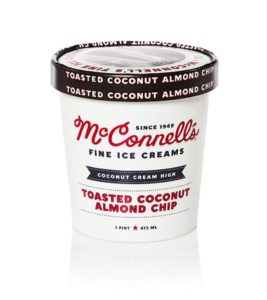 After that, I went and had some bacon and eggs and toast and fruit, then I picked up some packages and the important envelope (finally!). Then I came home, listened to music, and did some work on the computer. I had some telephonic calls, then after a few hours I went to Gelson’s and got some food from the hot food bar – just a bit of chicken teriyaki. I got some fast-cook white rice to go with it, and I bought some ice cream for a little sweet treat. I came home, did some more listening to music, ate the food, and tried the new ice cream. Well, what a major discovery this ice cream was – a brand I’ve never had before called McConnell’s. The name of the flavor immediately appealed to me – toasted coconut almond chip. I had a little cup of it and it was absolutely fantastic. It took all my willpower not to just finish it all. If you like those ingredients (coconut, almonds, and chocolate chips) and they have this brand, give it a try. A major discovery.