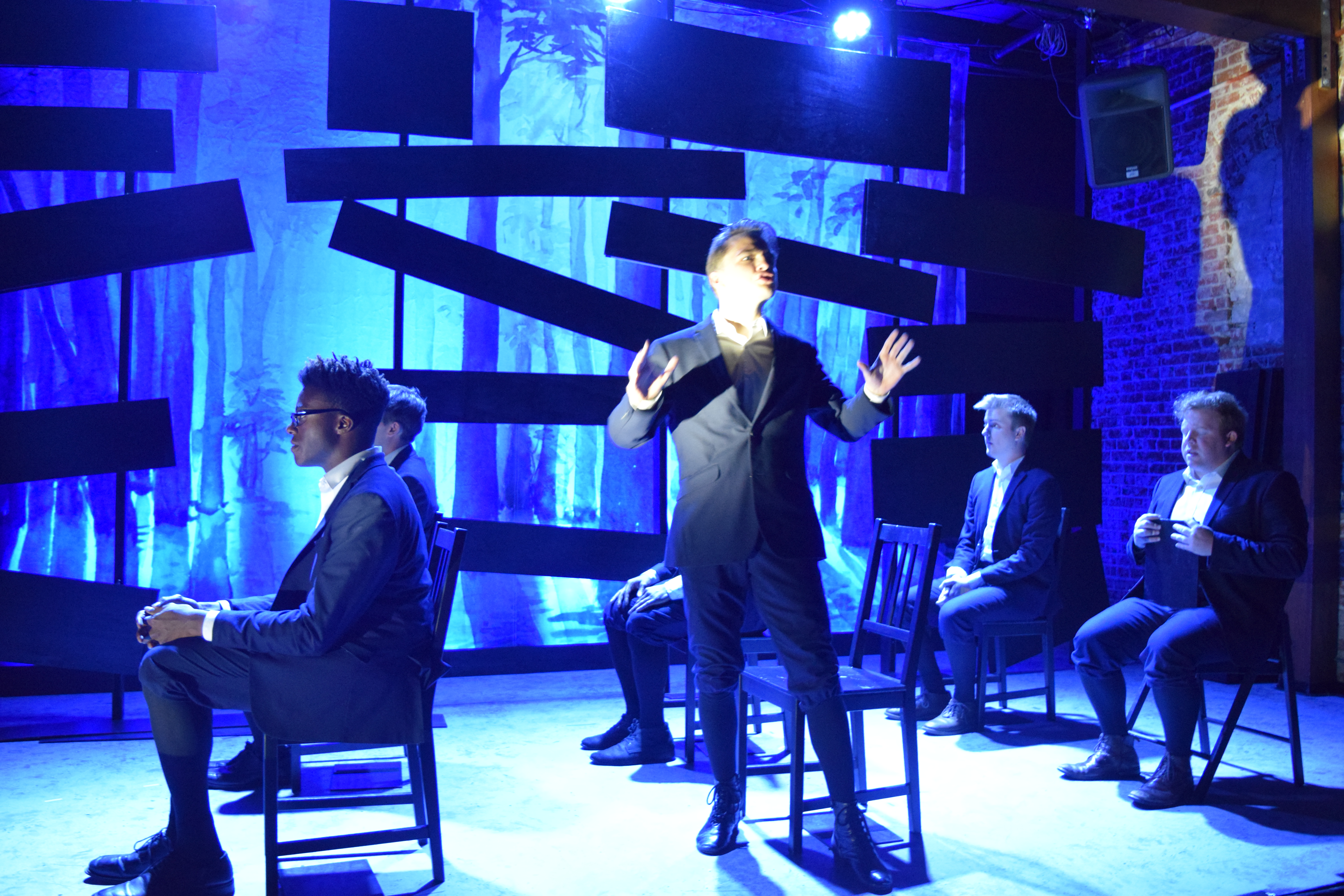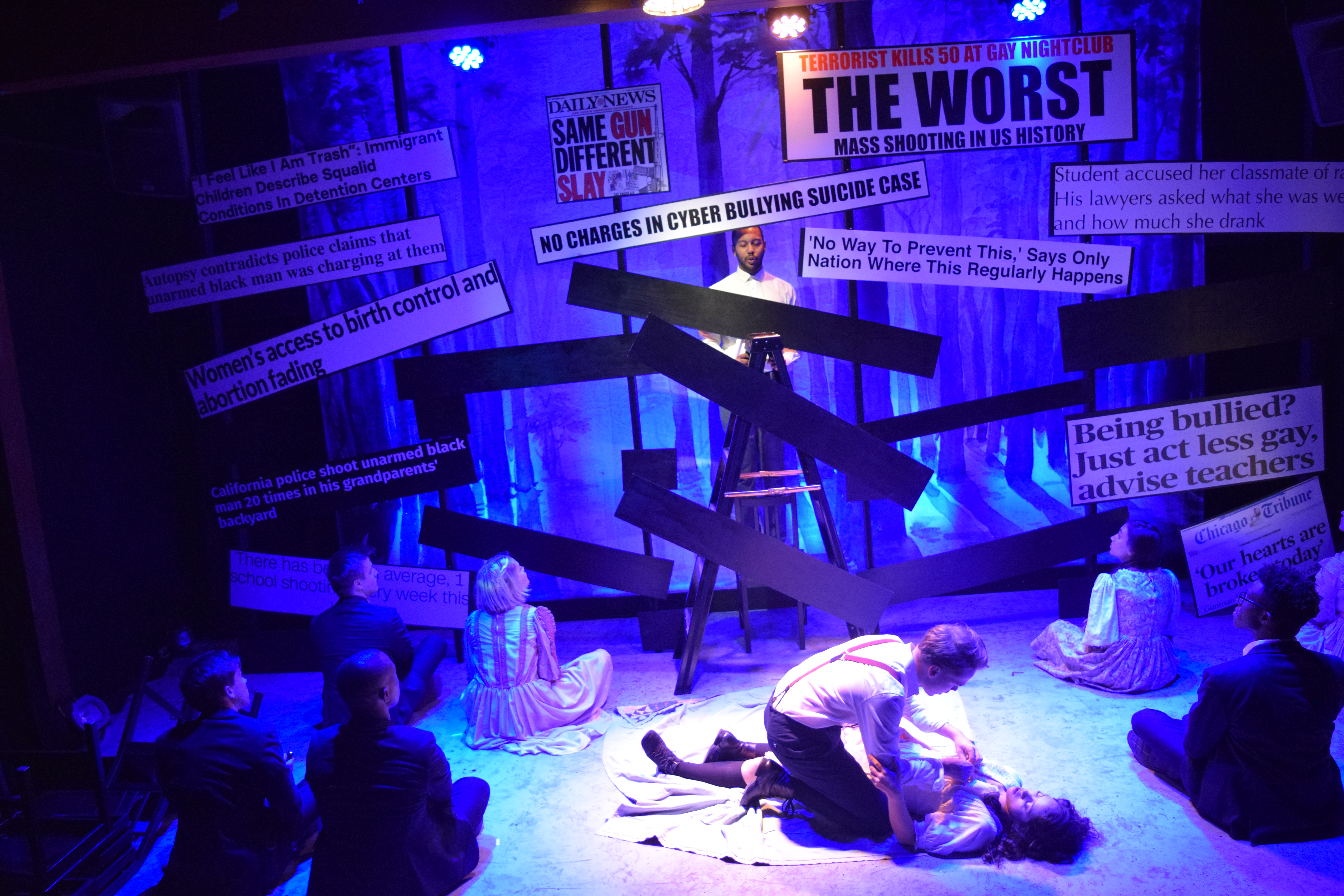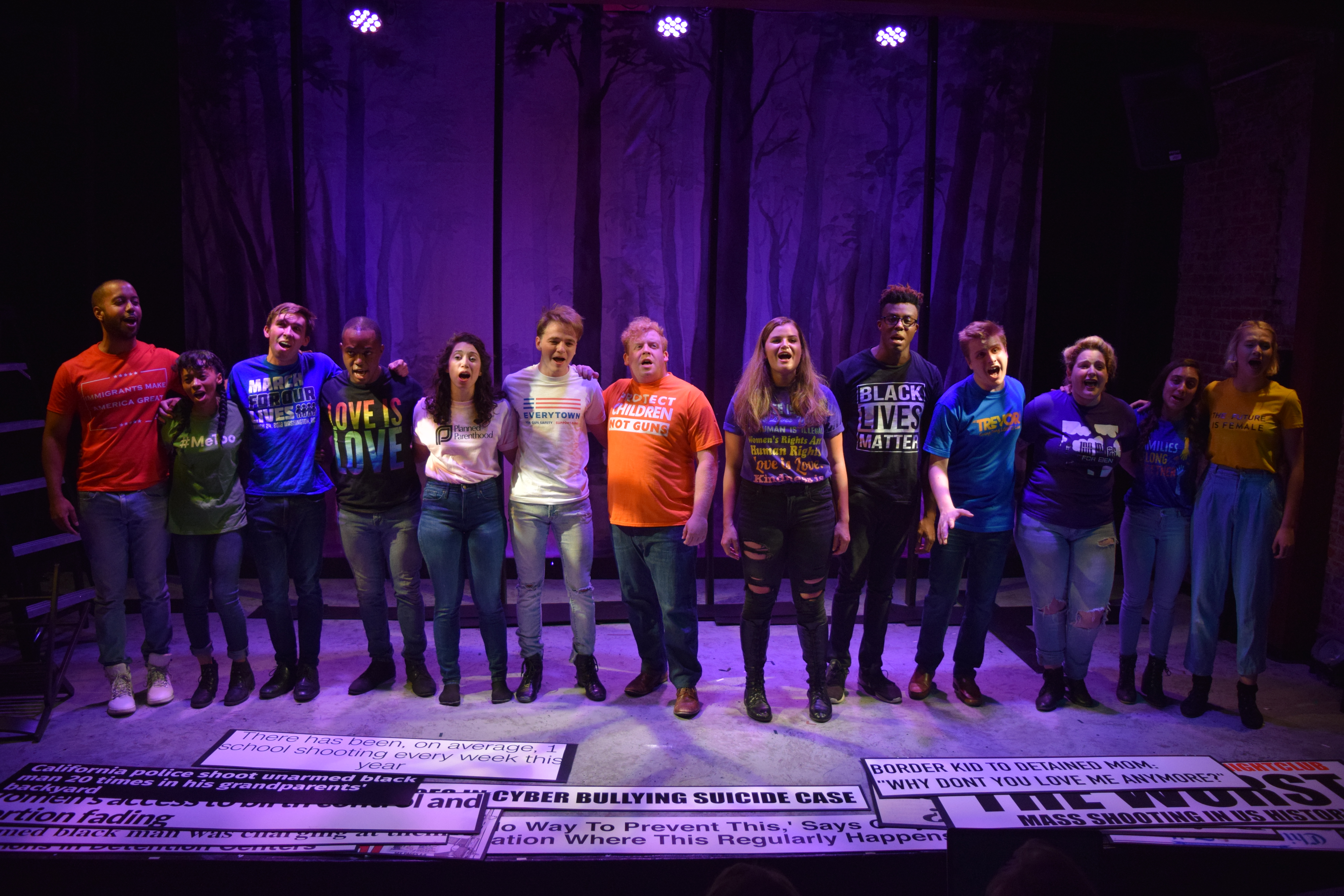 Jack Stuart plays all the Adult Men while Anthony Cloyd, Emma Lou DeLaney, Laila Drew, Timothy Reese, Juj Seeley, Abigail Thomas, Michael Waller and L.E. Woods play the other teenagers, each getting a chance to shine in their solo work and blending their voices harmoniously together in a near heavenly choir sounding chorus for most numbers. A production as stellar as this Spring Awakening is a rarity and really deserves a longer run, not only so others could share in its rapture, but so that support for their cause (100% of proceeds go towards Everytown for Gun Safety) could reach more people.