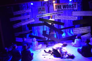 Now producer Asha Noel Iyer’s original concept is to make the show even more relevant in today’s world of cyber bullying, weekly mass shootings at high schools around the country, the epidemic of teen suicides, the hate crimes, the government ordained separation of immigrant families and so much more that make up the daily headlines. An extremely talented baker’s dozen of performers under the assured and inspired hand of director/choreographer Travis Kendrick create theatrical magic on the small stage of the Lounge Theatre. Being in such close proximity to the action in the 60-seat theatre, you can’t help but feel the intensity of the emotions generated by these troubled teens as they attempt to cope with the lives they have been given. Their emotions become your emotions. You can’t help but be affected by them.