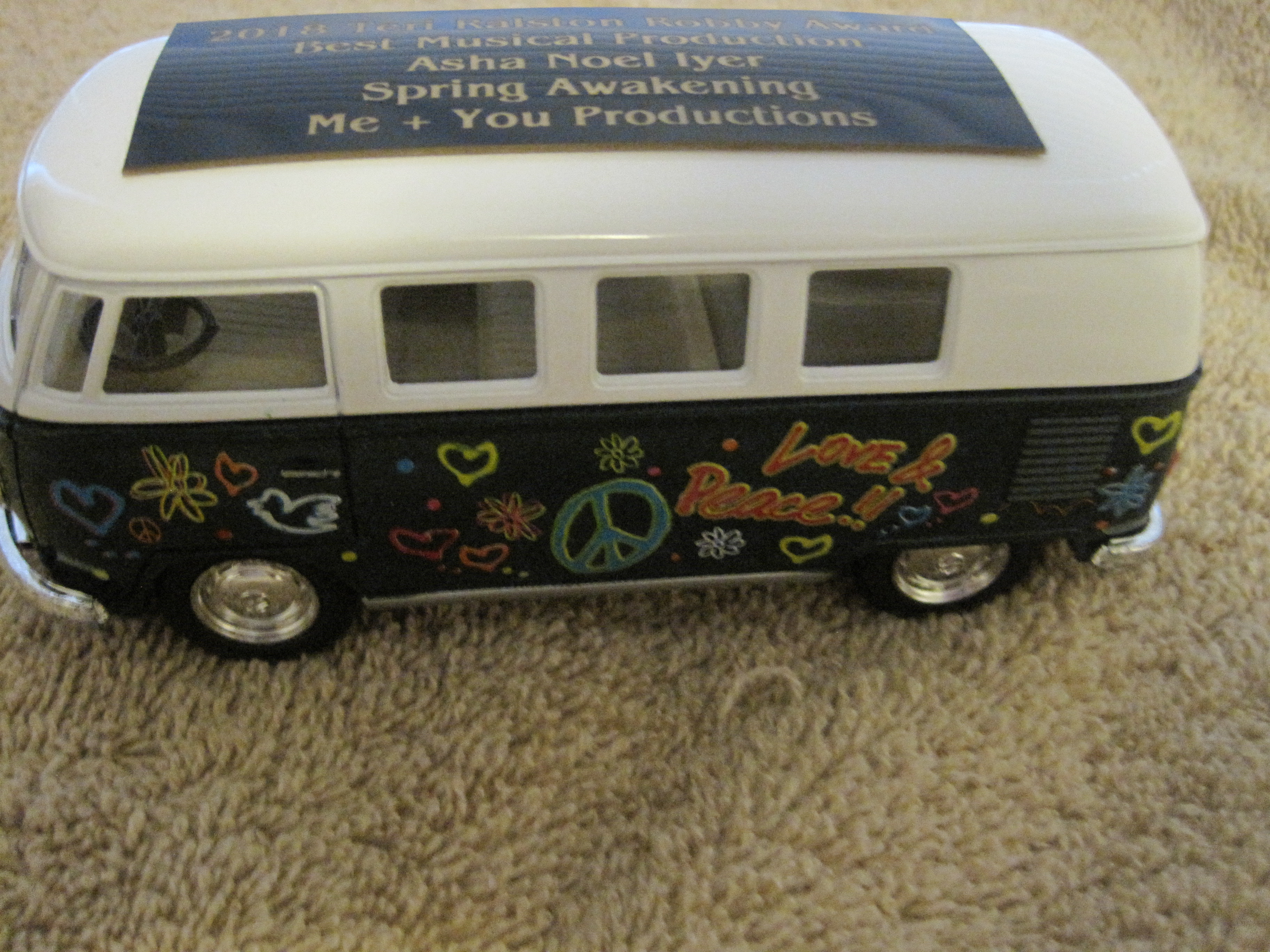 Hollywood’s Celebration Theatre was the big winner of the night, taking home nine awards—five for Priscilla Queen of the Desert and four for Cabaret. Cabaret tied for Best Musical of the year with Spring Awakening, the first Los Angeles show by Me + You Productions. Hollywood’s The Fountain Theatre’s The Chosen was named Best Drama Production as well as receiving two acting awards while Pasadena’s A Noise Within’s production of Noises Off was named Best Comedy. Twenty-two productions at sixteen different Los Angeles venues won awards. The evening was highlighted by the introduction of a new trophy, replacing the standby framed certificate. The winners present seemed to enjoy receiving their mini VW van buses as their award. A complete list of the award winners follows.