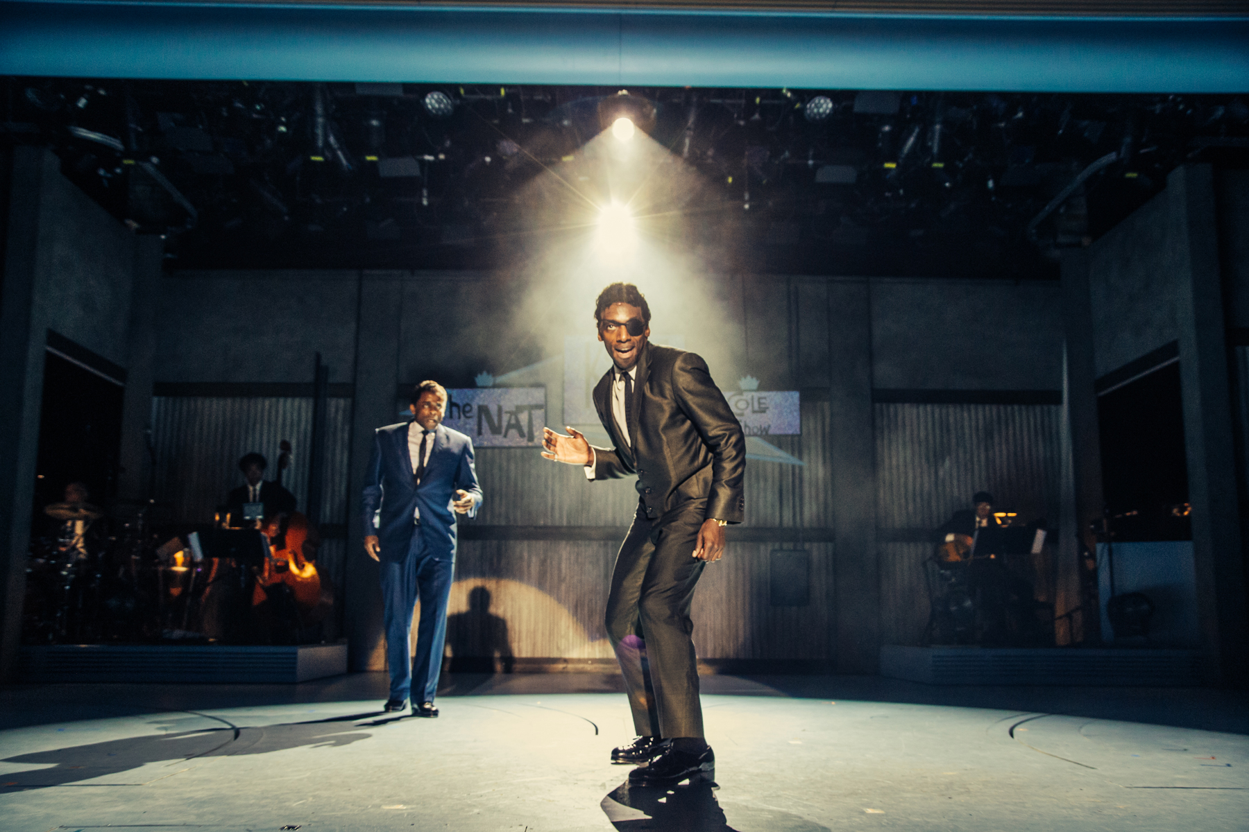 The action takes place on the night of December 17, 1957, at the taping of the final show. Cole is depressed by the ending of his show and his constant battle against the rampant prejudice of the time. Cole’s cool public demeanor breaks at times as he gives vent to his anger and frustration. It’s a powerful and theatrical storytelling device that is occasionally marred by unclear writing and the not always in sync direction of McGregor. Most of the time the “fantasy” sequences are clearly delineated by changes in the set design by Clint Ramos & Ryan Howell, with the TV studio lights and band disappearing from view. Other times the studio set is still in place during what is clearly a rage-filled fantasy in Cole’s mind. These rages are usually fueled by the appearance of Sammy Davis, Jr. who acts as the devil on Cole’s shoulder, encouraging his break with pleasing the white folks.