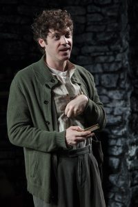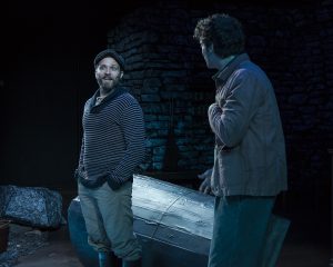 Irish writer Martin McDonagh is now a well-known and well-respected screenwriter and film director after 2017’s Three Billboards Outside Ebbing, Missouri as well as his earlier films In Bruges and Seven Psychopaths. He first came to acclaim with The Leenane Trilogy of plays—The Beauty Queen of Leenane, A Skull in Connemara and The Lonesome West. He has an uncanny talent for mixing dark humor with shocking violence, causing his audiences to laugh and gasp, often at the same time. Antaeus Theatre Company is currently presenting The Cripple of Inishmaan which may be McDonagh’s funniest and probably his least violent stage work. John Iacovelli’s gorgeous natural stone looking scenic design at worst gets an egging but the stage is not drenched in blood as it is in McDonagh’s The Lieutenant of Inishmore.