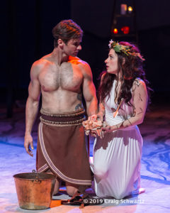 Once the Argonauts finally reach Colchis and are in site of the Golden Fleece, they still have to face the villainy of King Aeetes (Stuart again)–his fire-breathing bulls and army of skeletons, not to mention a dragon that never sleeps. In one of the funniest scenes, Hera and Athena visit Aphrodite (Cassandra Marie Murphy), goddess of love, and ask her to send her son Eros AKA Cupid (Marc Leclerc) to shoot Aeetes’ daughter Medea (Angela Gulner) with an arrow to the heart so she will fall in love with Jason and aid him in his quest with her magic. Their plot works and soon with fleece and Medea in hand, Jason and the Argonauts are back on the open sea, homeward bound with a few more adventures and many tragedies ahead of them.